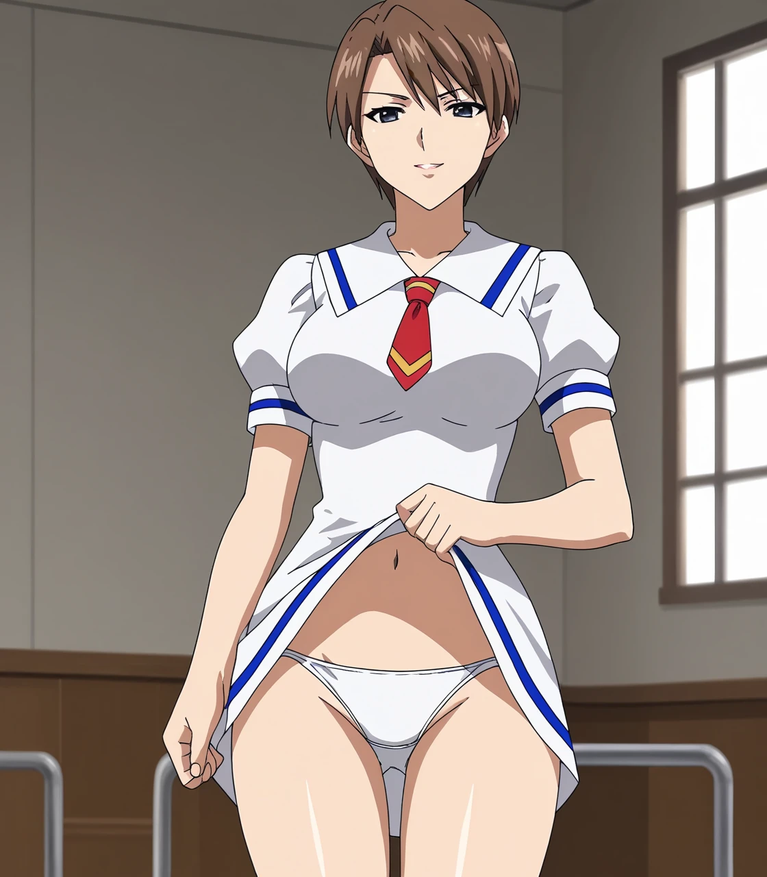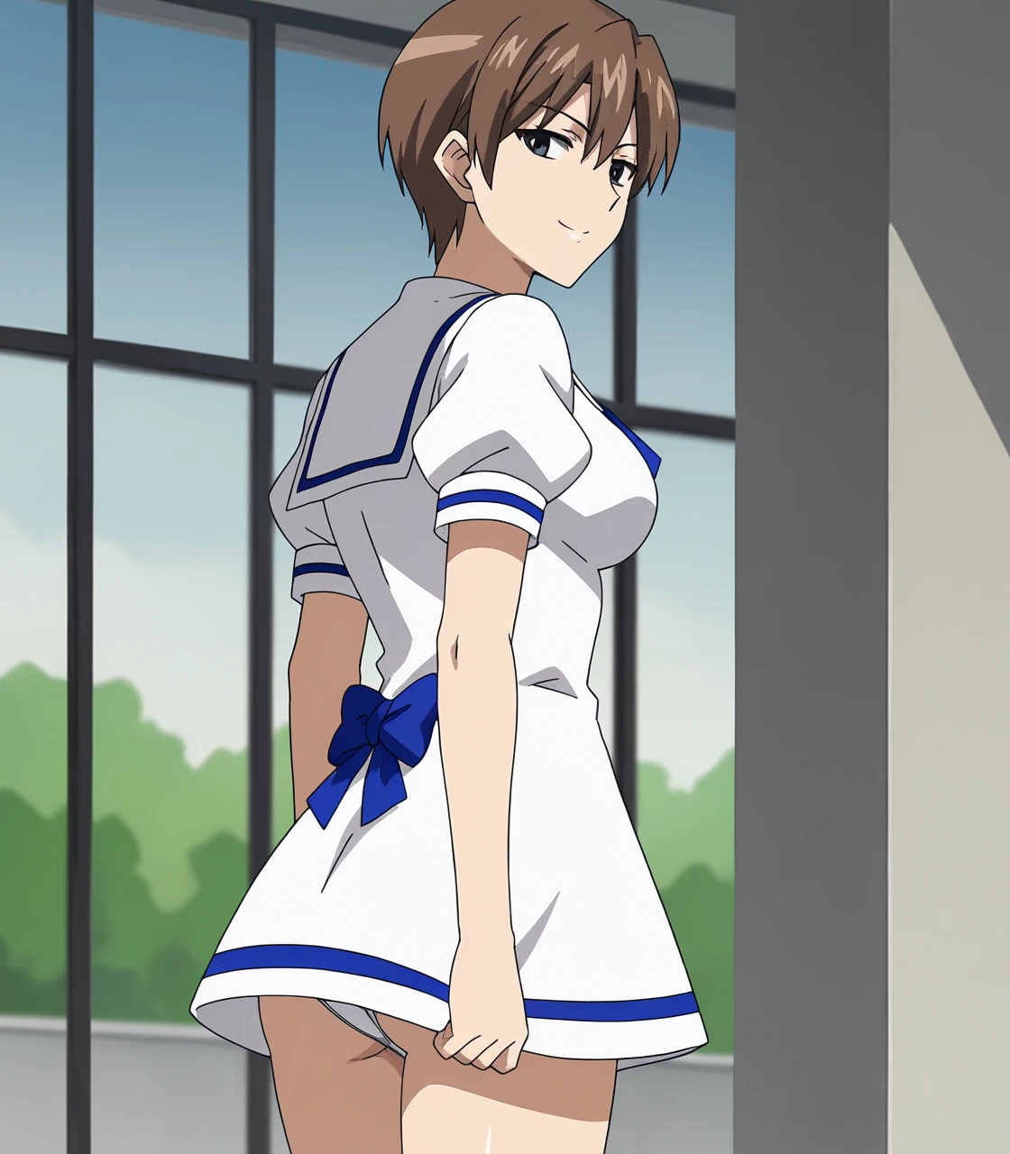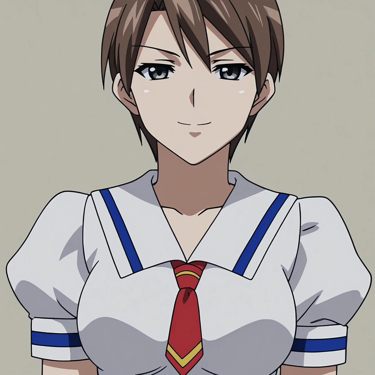 aikaYui, 1girl, brown hair, short hair, grey eyes