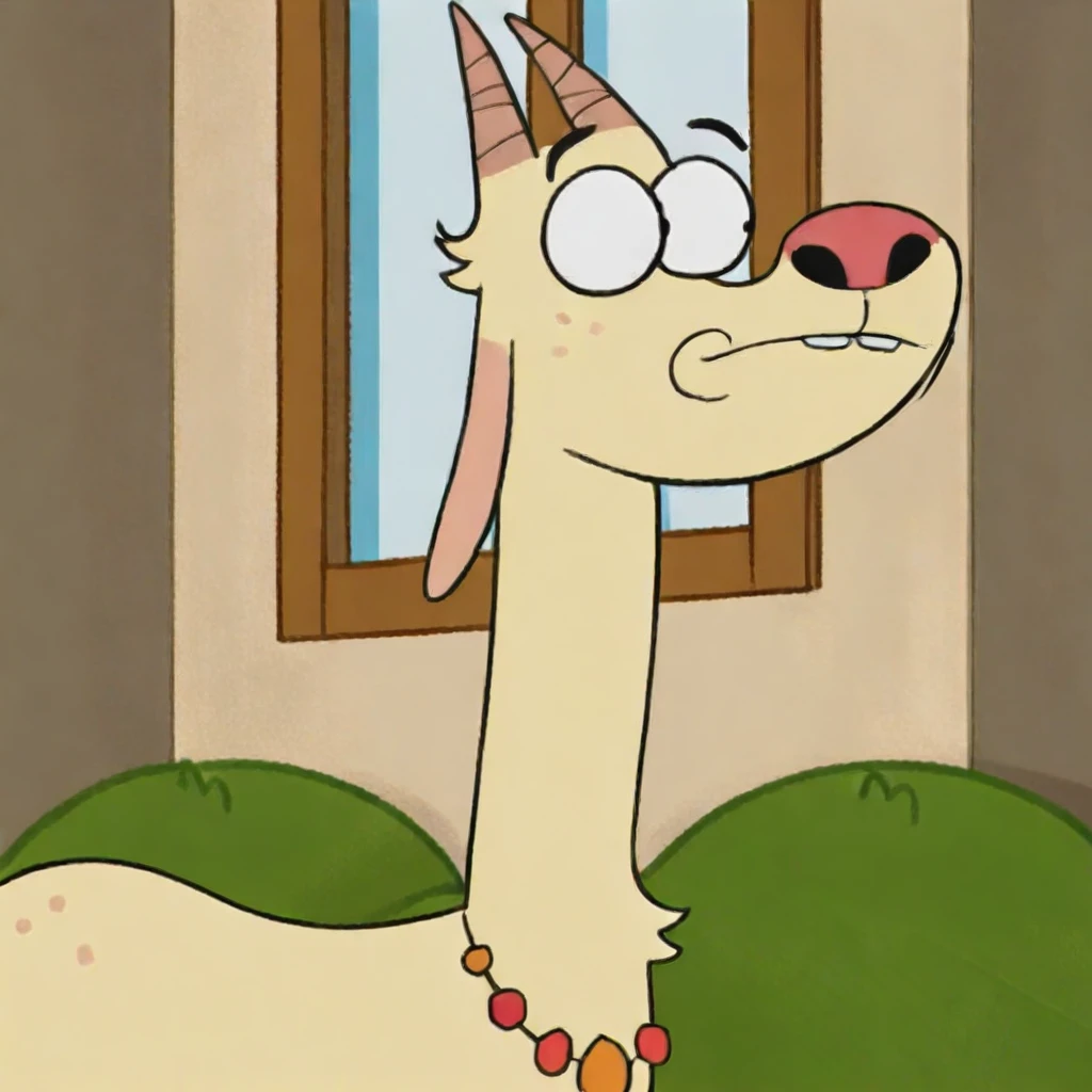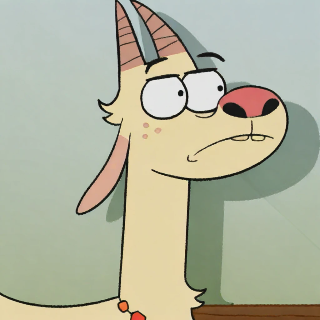 N4nette, goat, goat girl, beige fur, two-tone fur, pink nose tip, solid black eyes, horns, hooves, tail, necklace