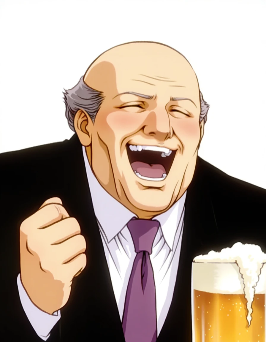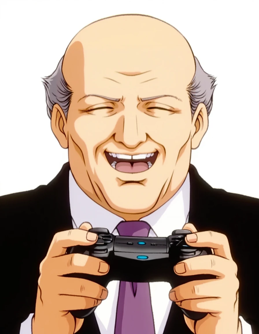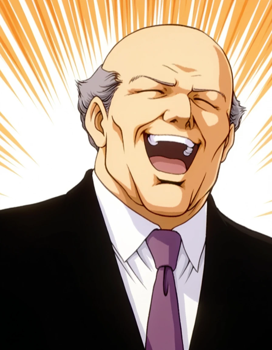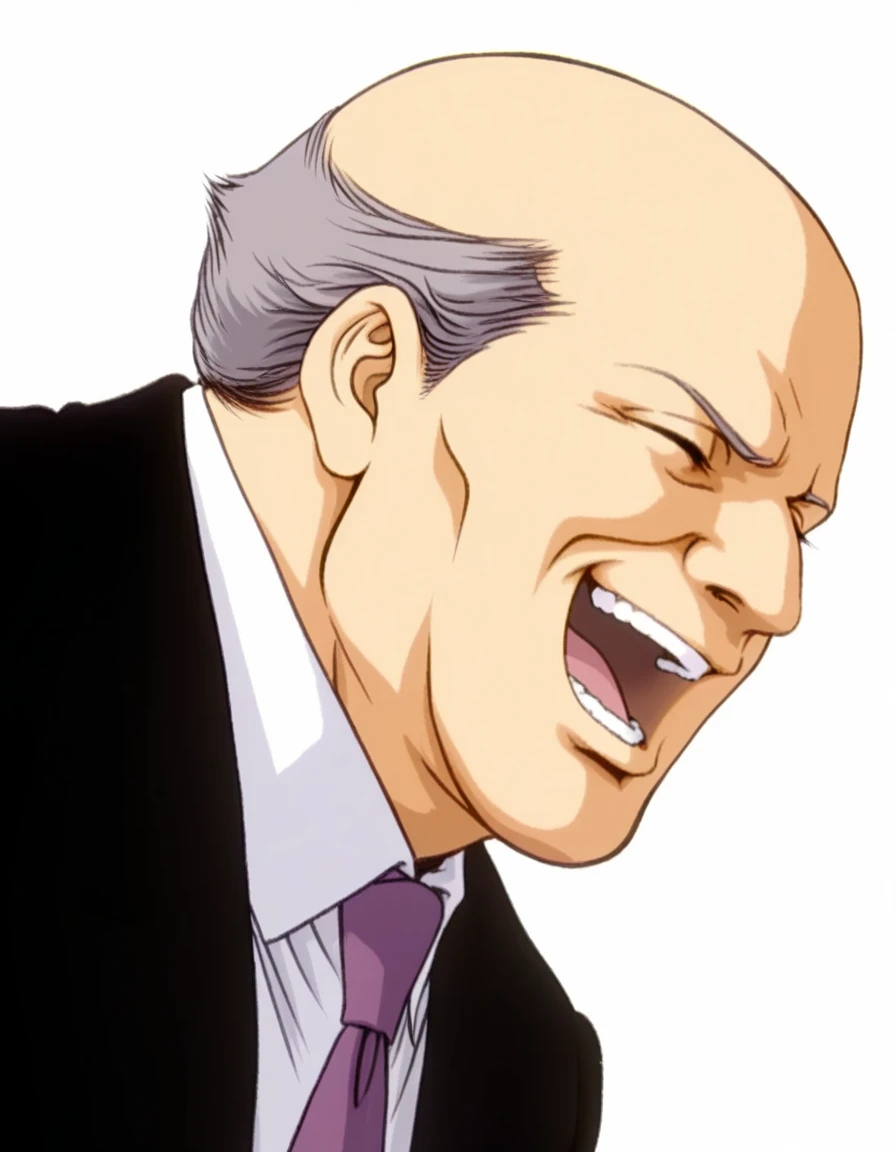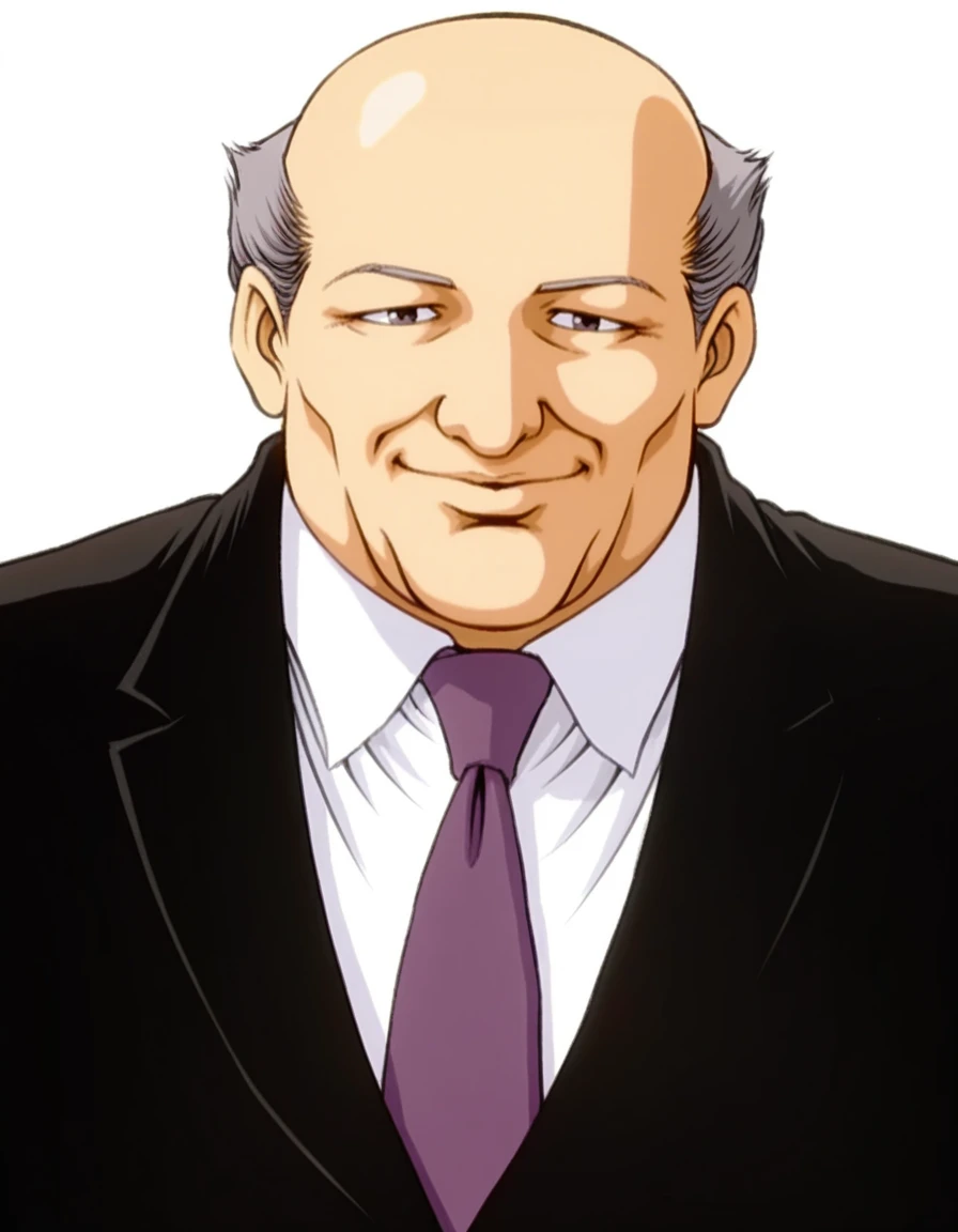 HRang,black jacket,grey hair,bald,long sleeves,old man,old,white shirt,collared shirt,purple necktie,