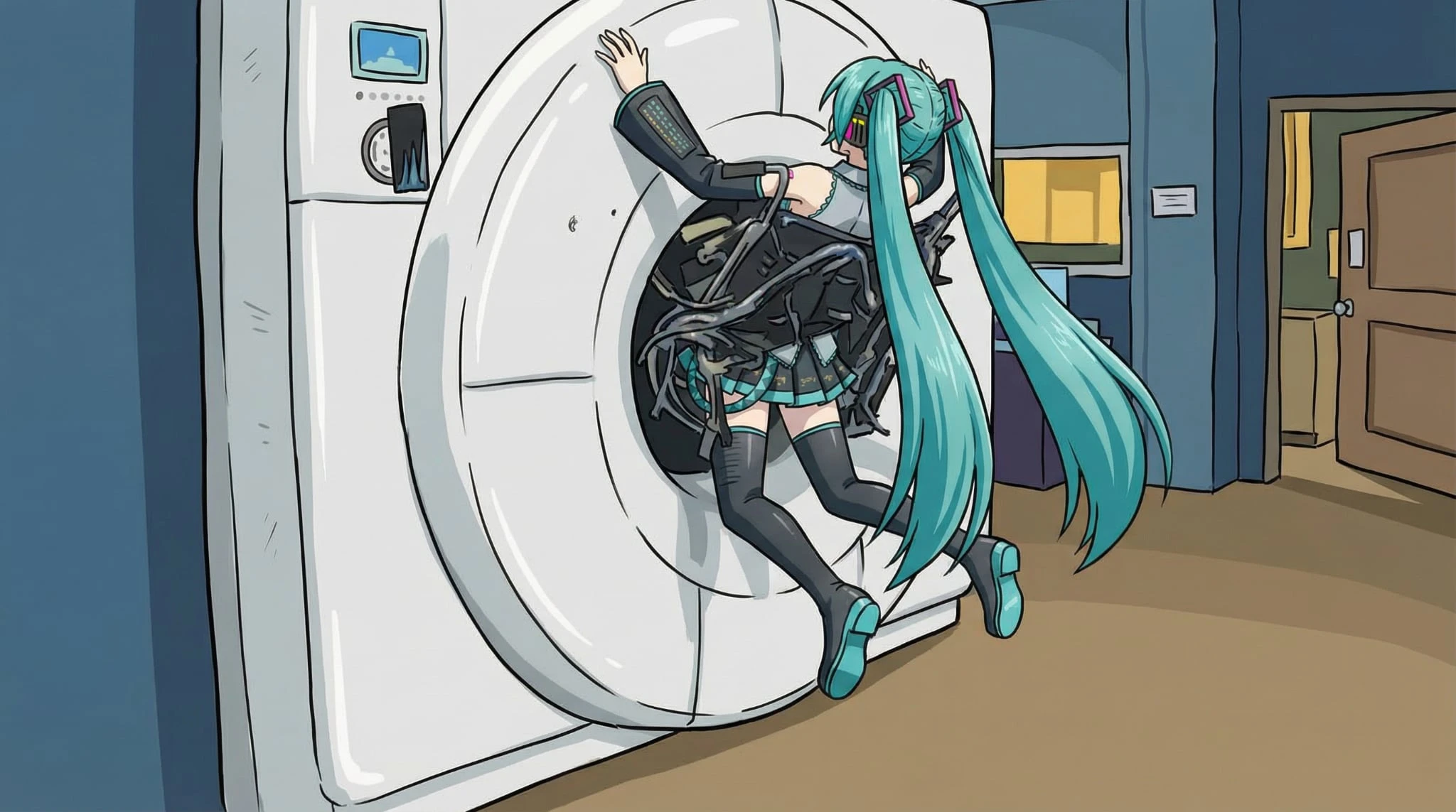 A LoRA based off the infamous MRI scene from Final Destination Bloodlines (2025), where Erik (Richard Harmon) is sucked into an MRI machine with a wheelchair and slowly and brutally impaled, folded, and crushed simultaneously.