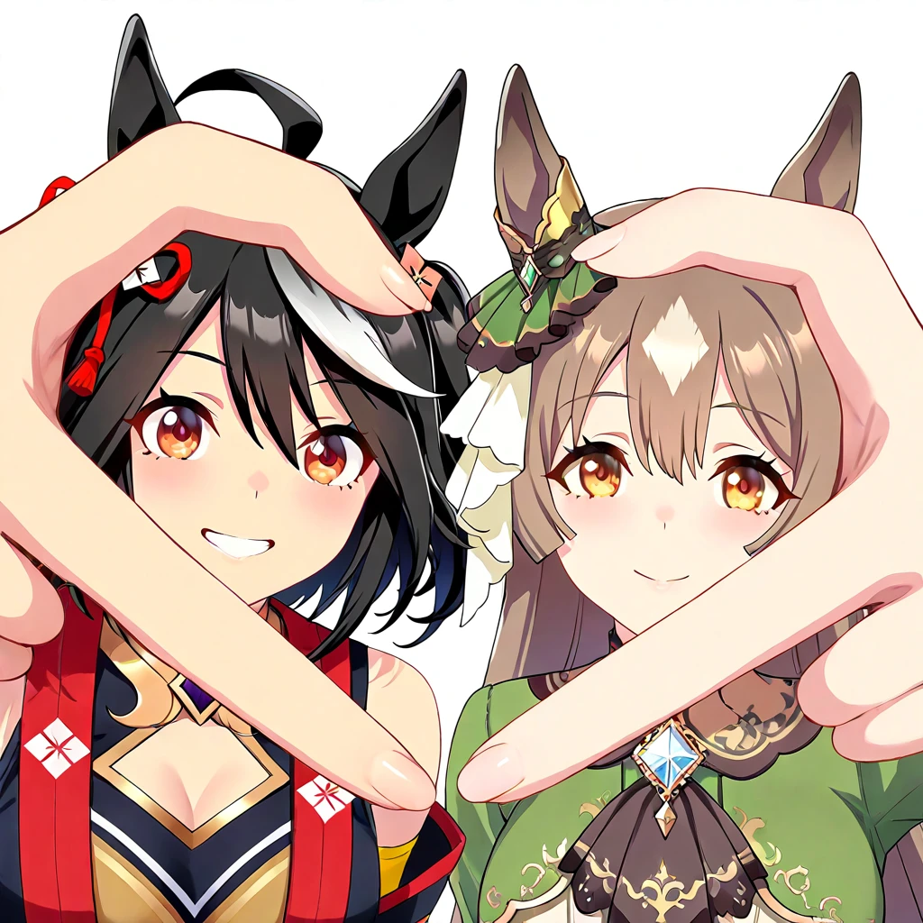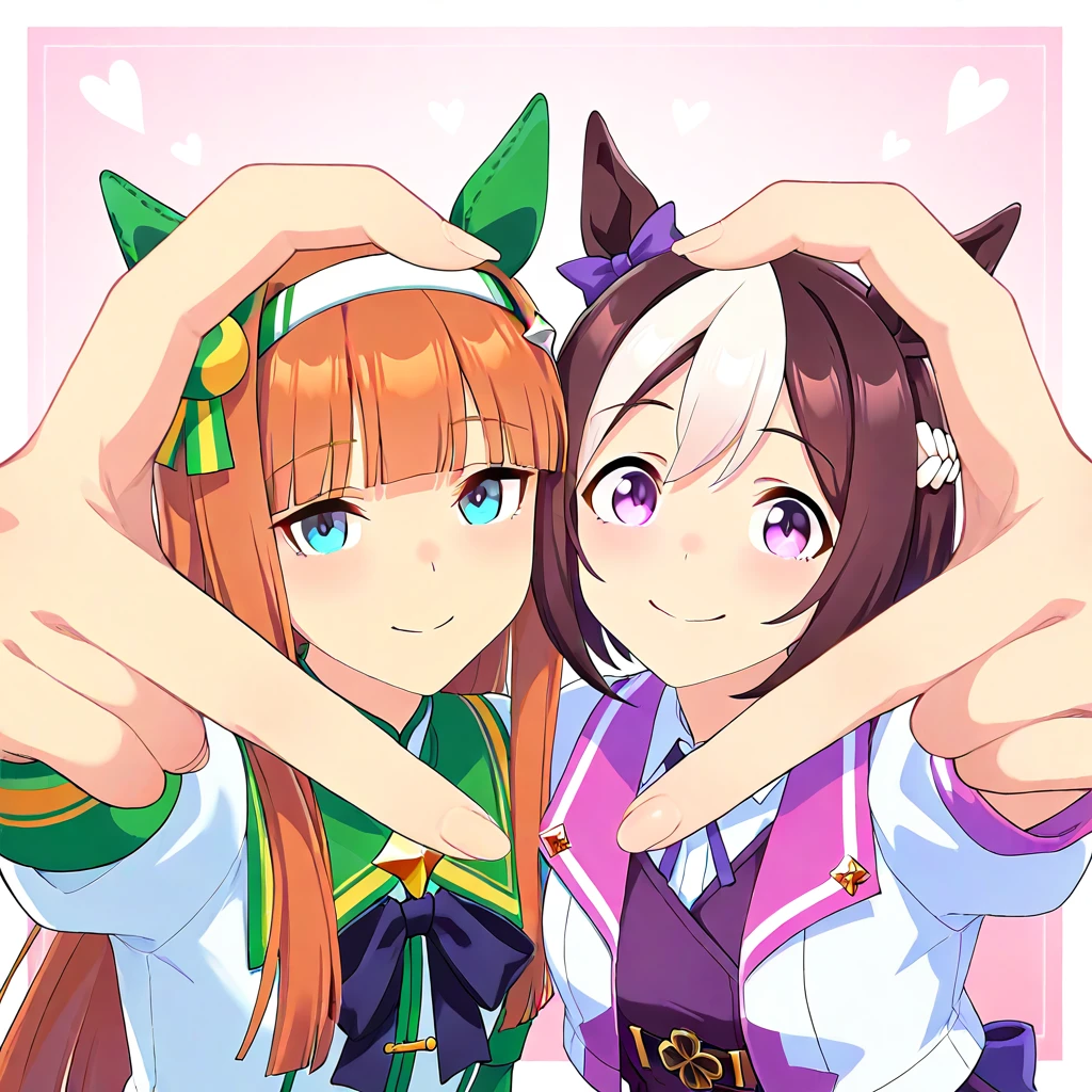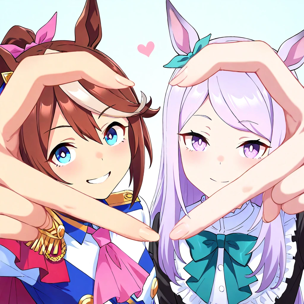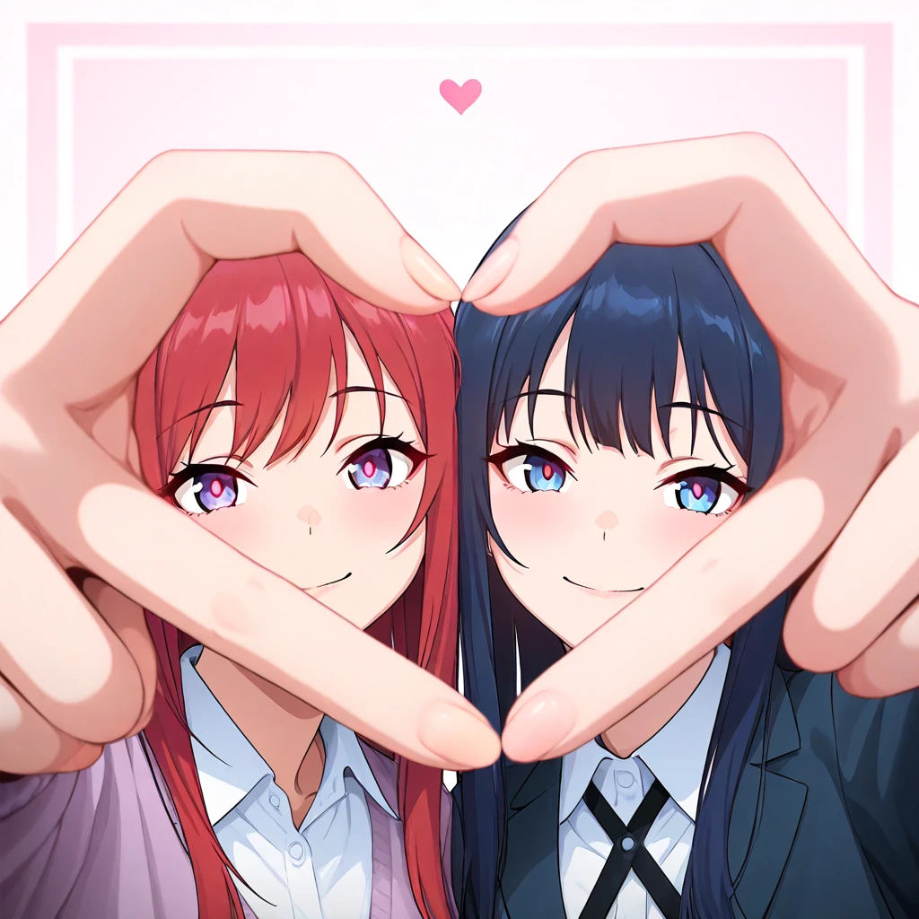 2girls, heart hands duo, finger frame
