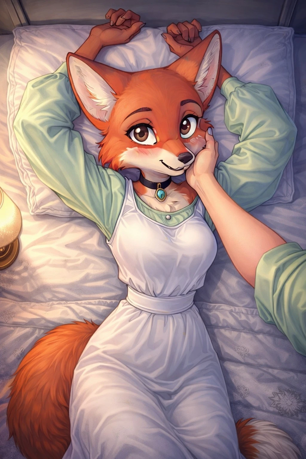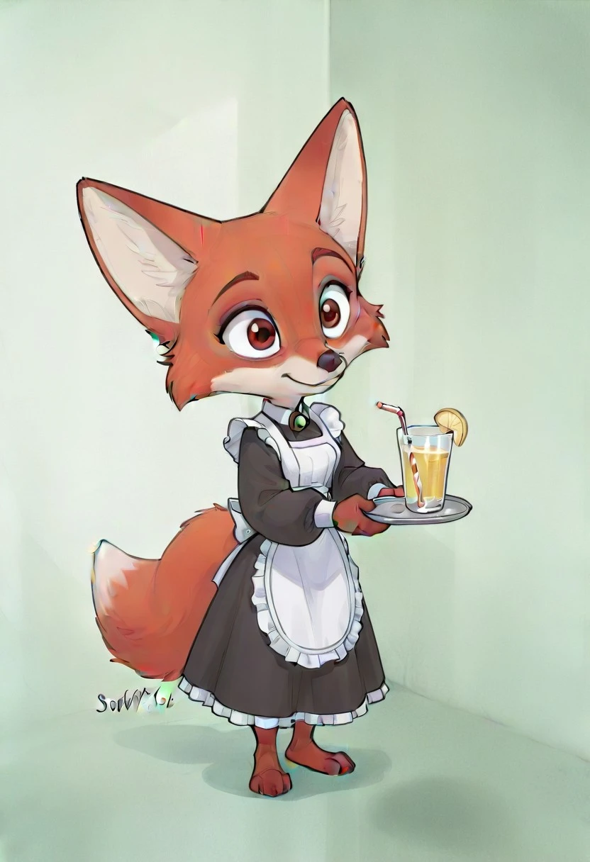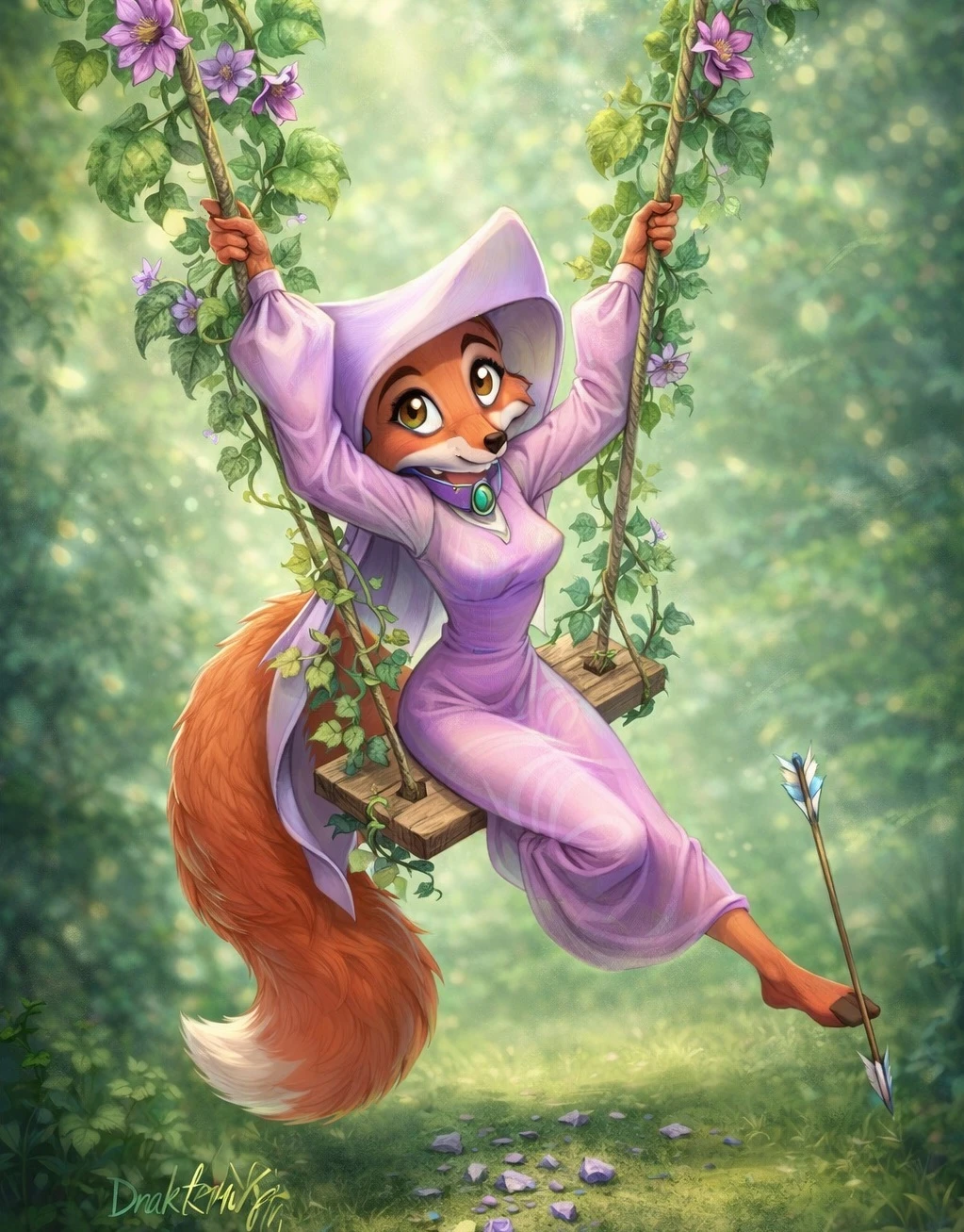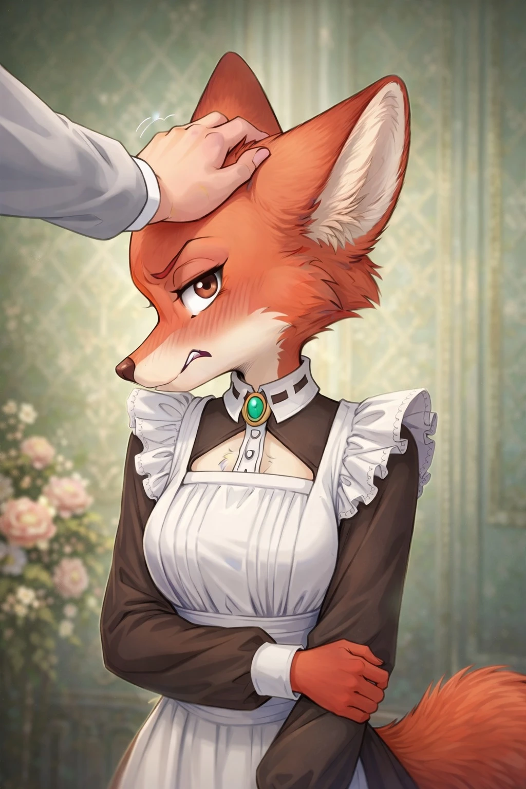 maid_marian, 1girl, solo, furry, furry female, fox girl, fox tail, brown eyes, red fur, animal ears, tail, fox ears, animal nose, snout, two-tone fur, orange fur,