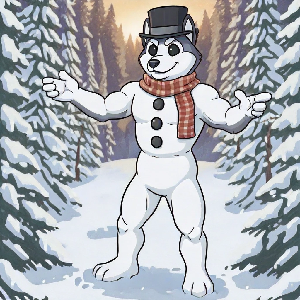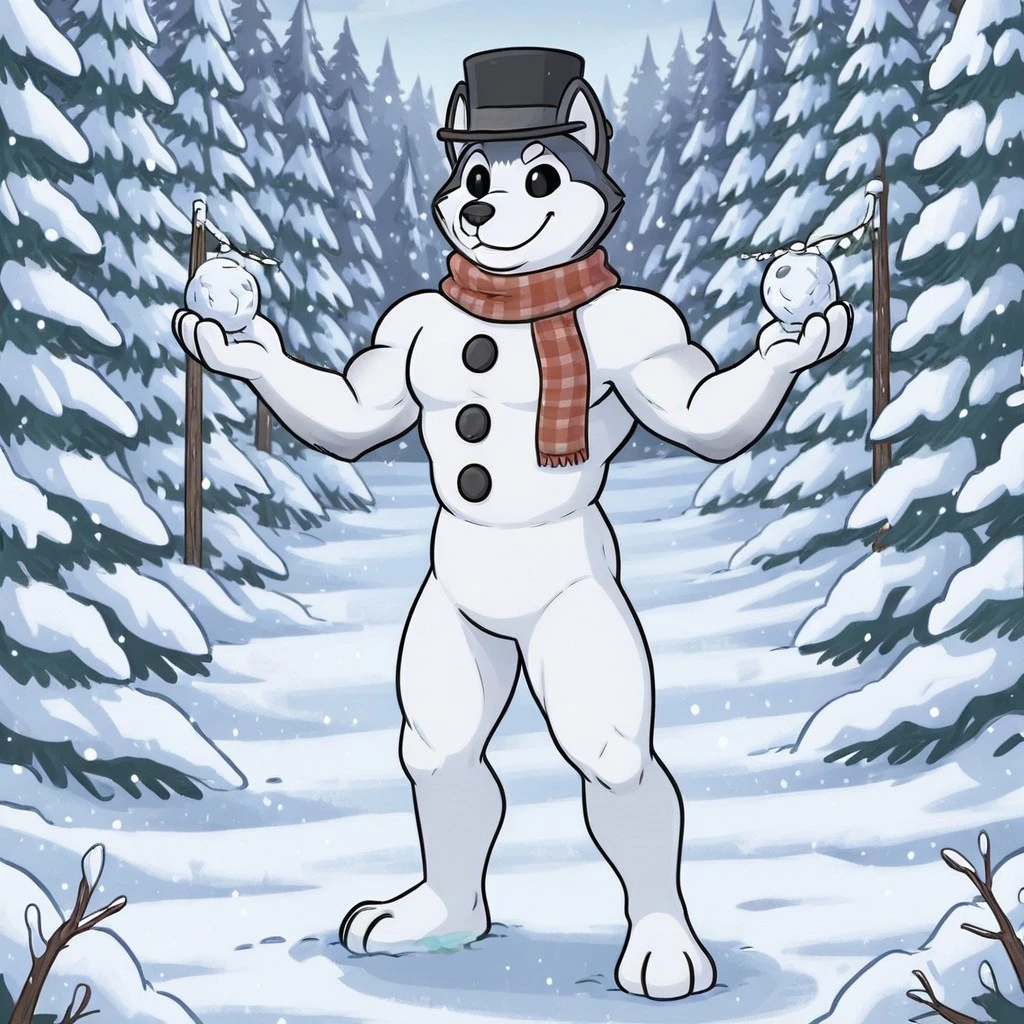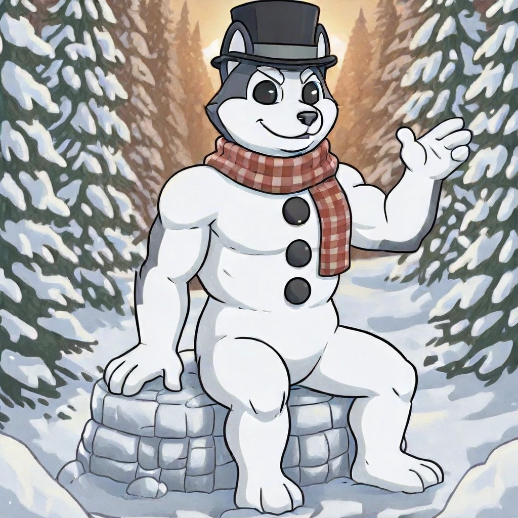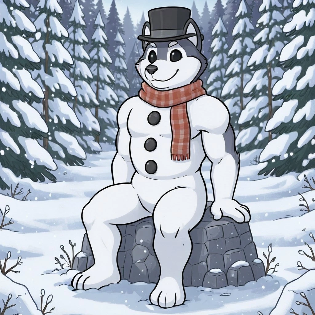 Meltin(character), male, anthro, furry, living snowman, body made of snow, eyes made of coal,