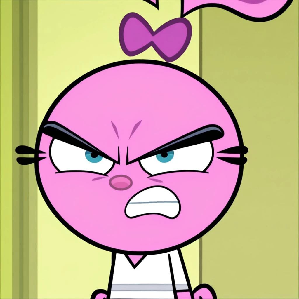 yin, pink skin, bow, official style, blue eyes, white shirt