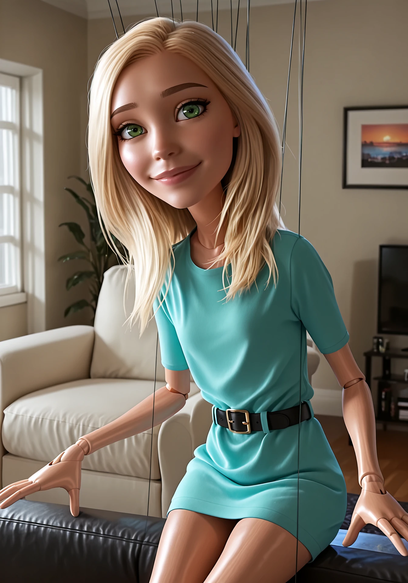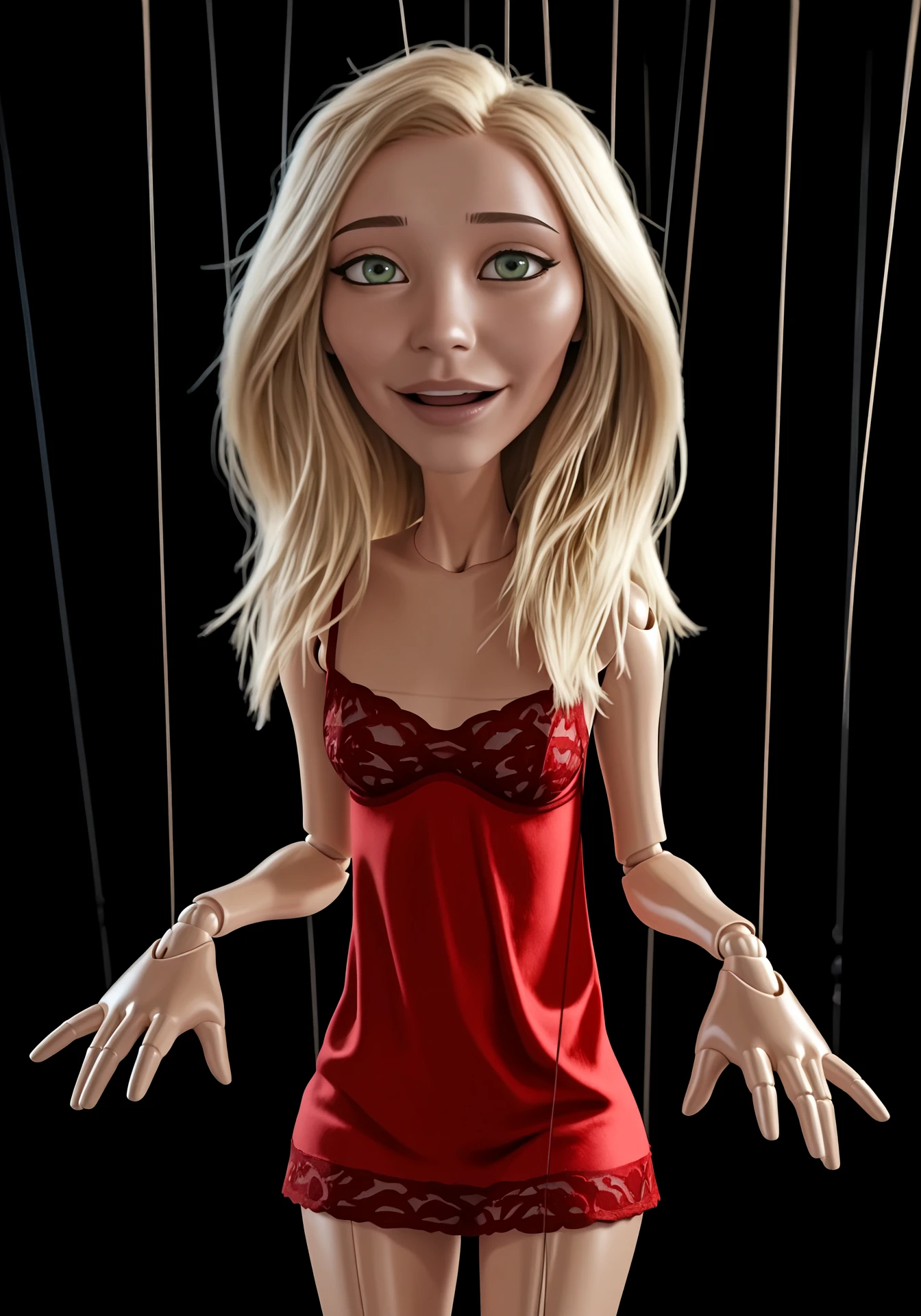 marionettewife, blonde hair, long hair, green eyes, lips, big eyes, doll joints