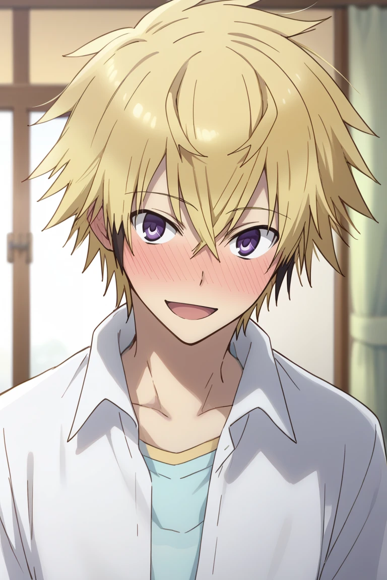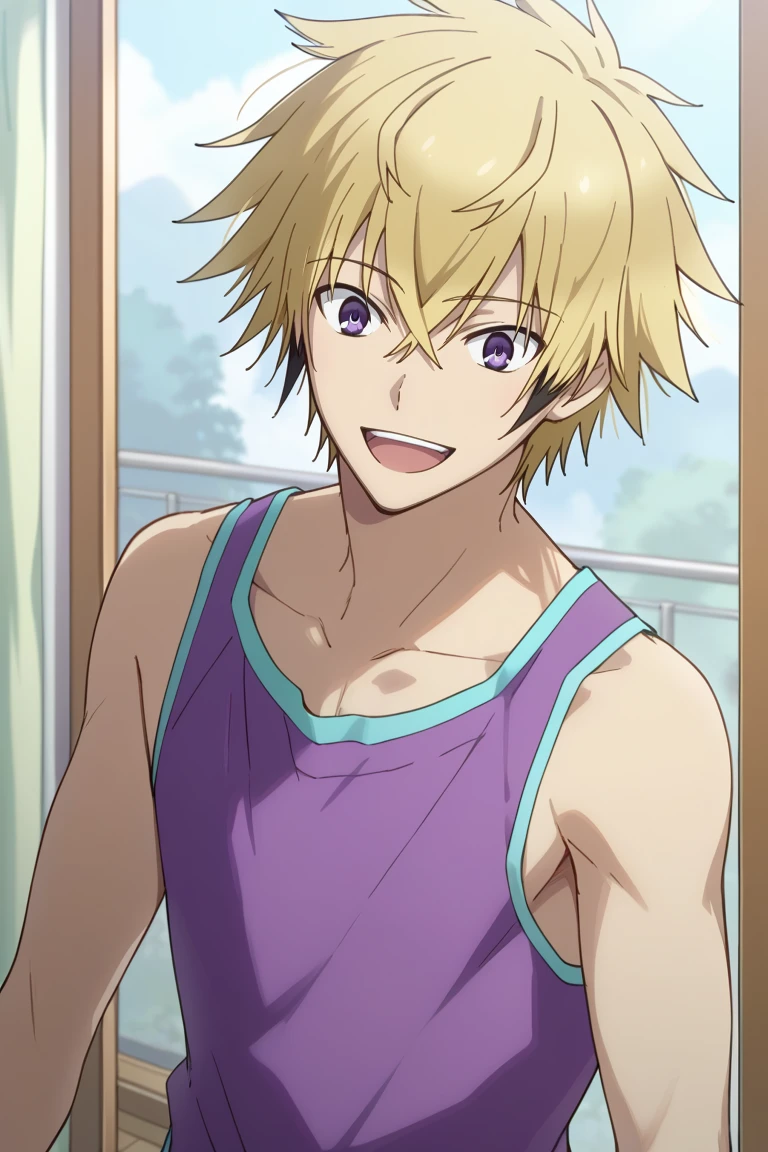 Trigger words: tsuchimikado harutora,blonde hair,black hair,purple eyes