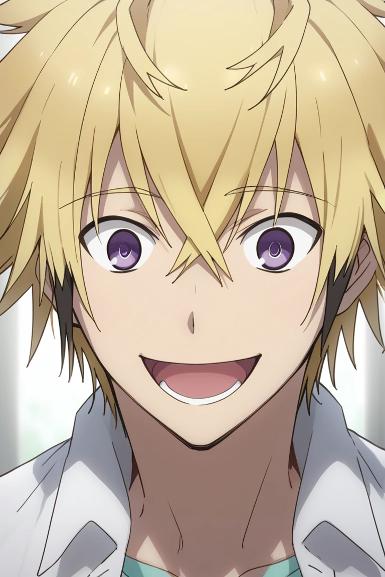tsuchimikado harutora,blonde hair,black hair,purple eyes