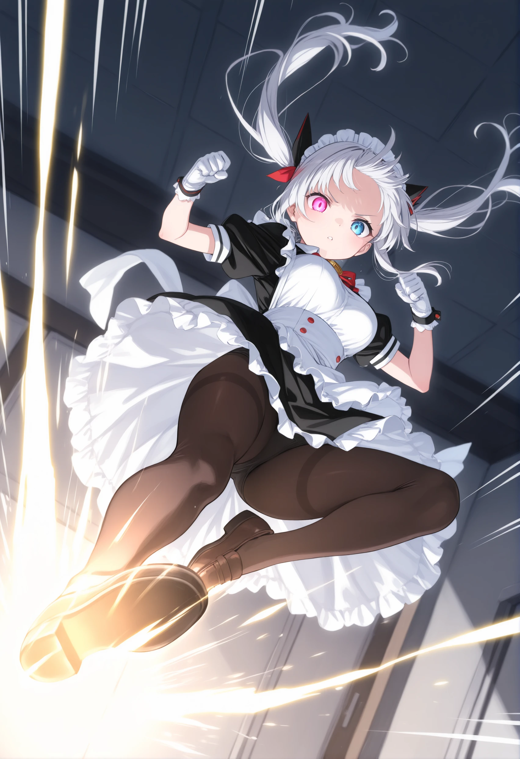 トリガーだけでもそれっぽいポーズは取りますが躍動感やエフェクトを足したい場合は flying kick, kicking, jumping, emphasis lines, incoming attack, flying, motion lines, motion blur 辺りと lightning, sparks, fire, glowing,explosion など必殺技っぽいプロンプトを加えてください。