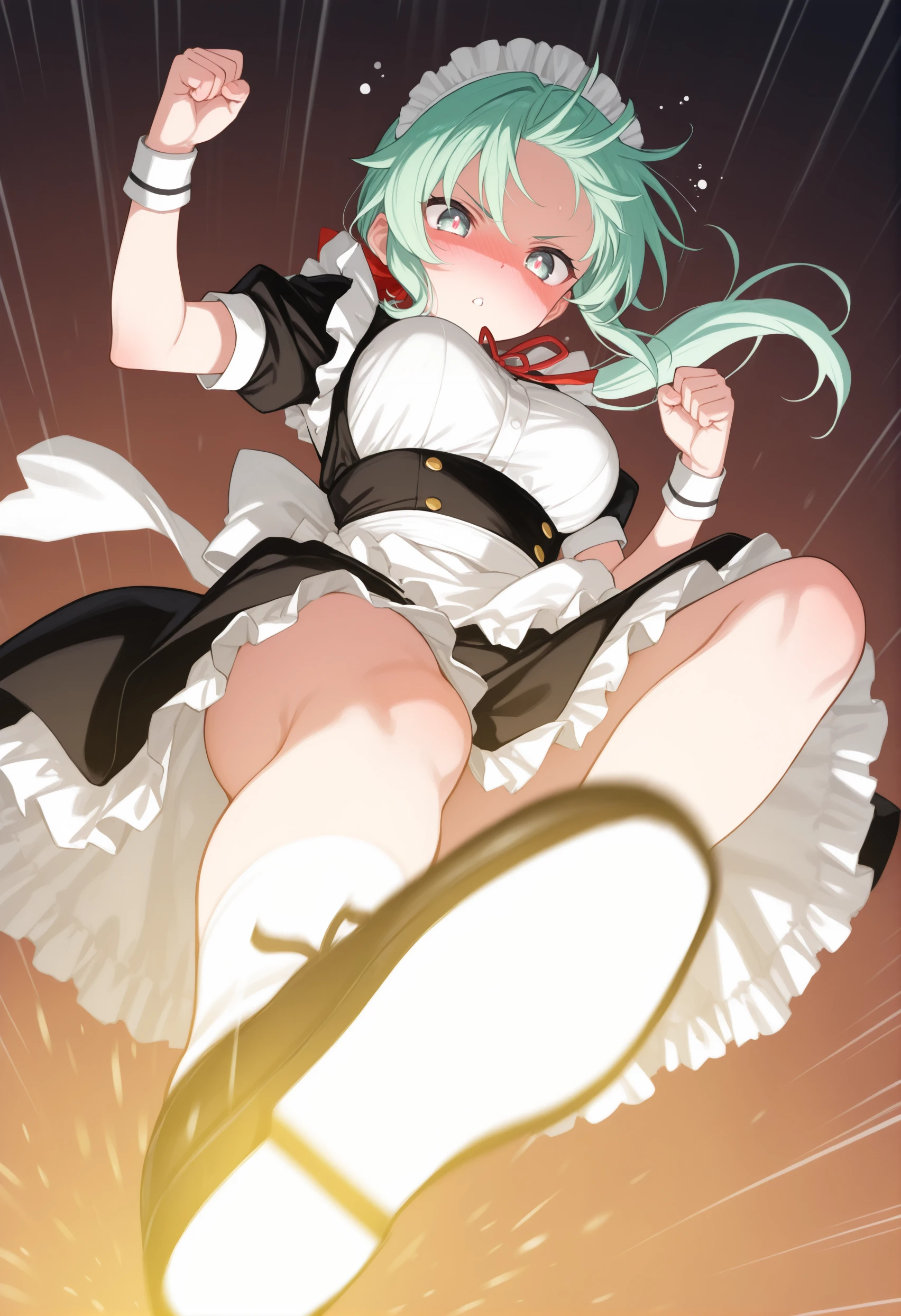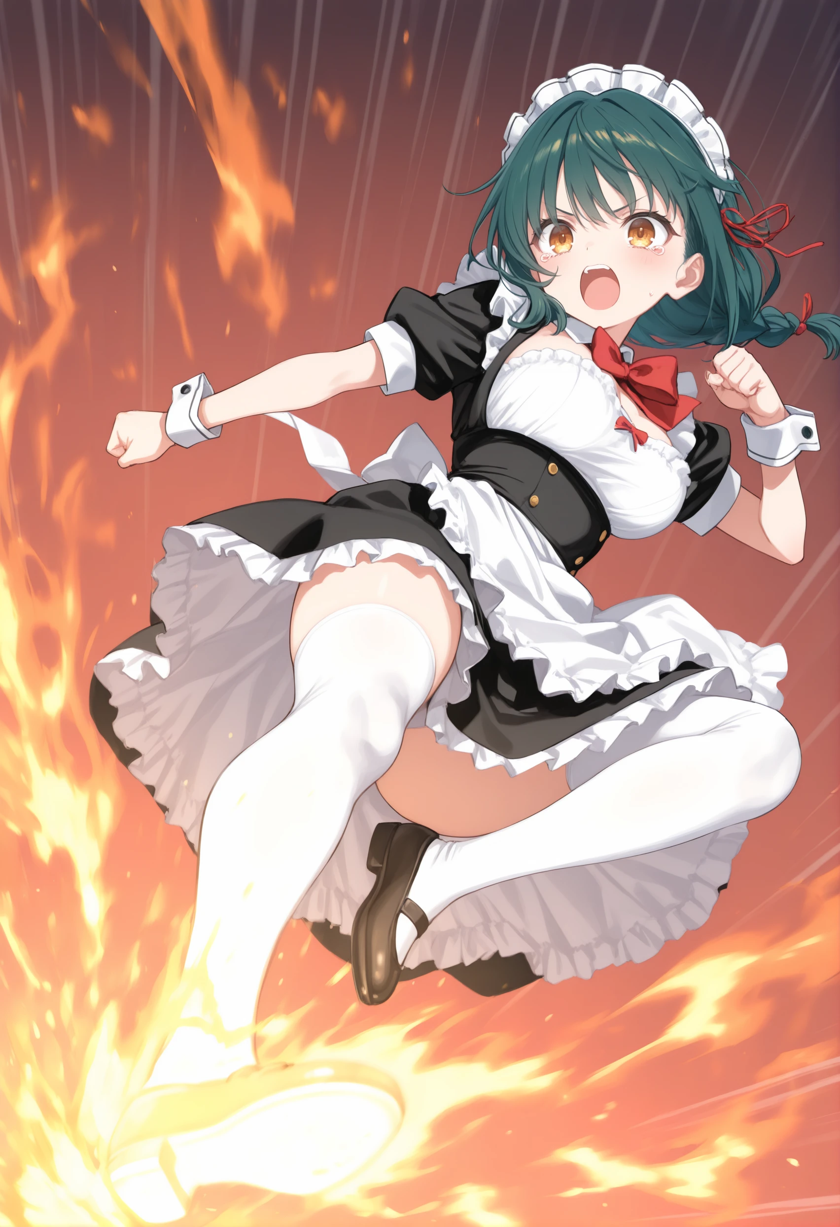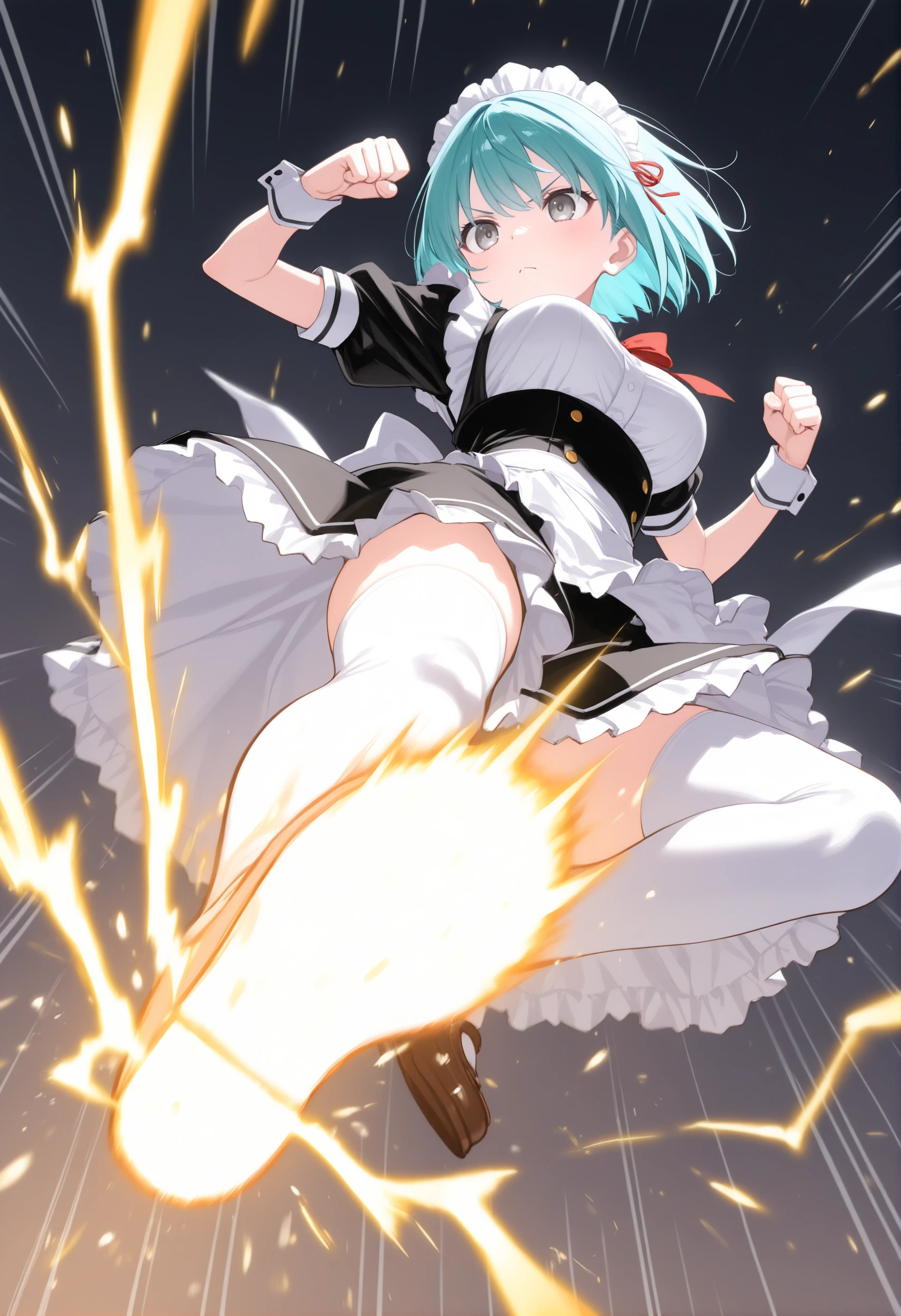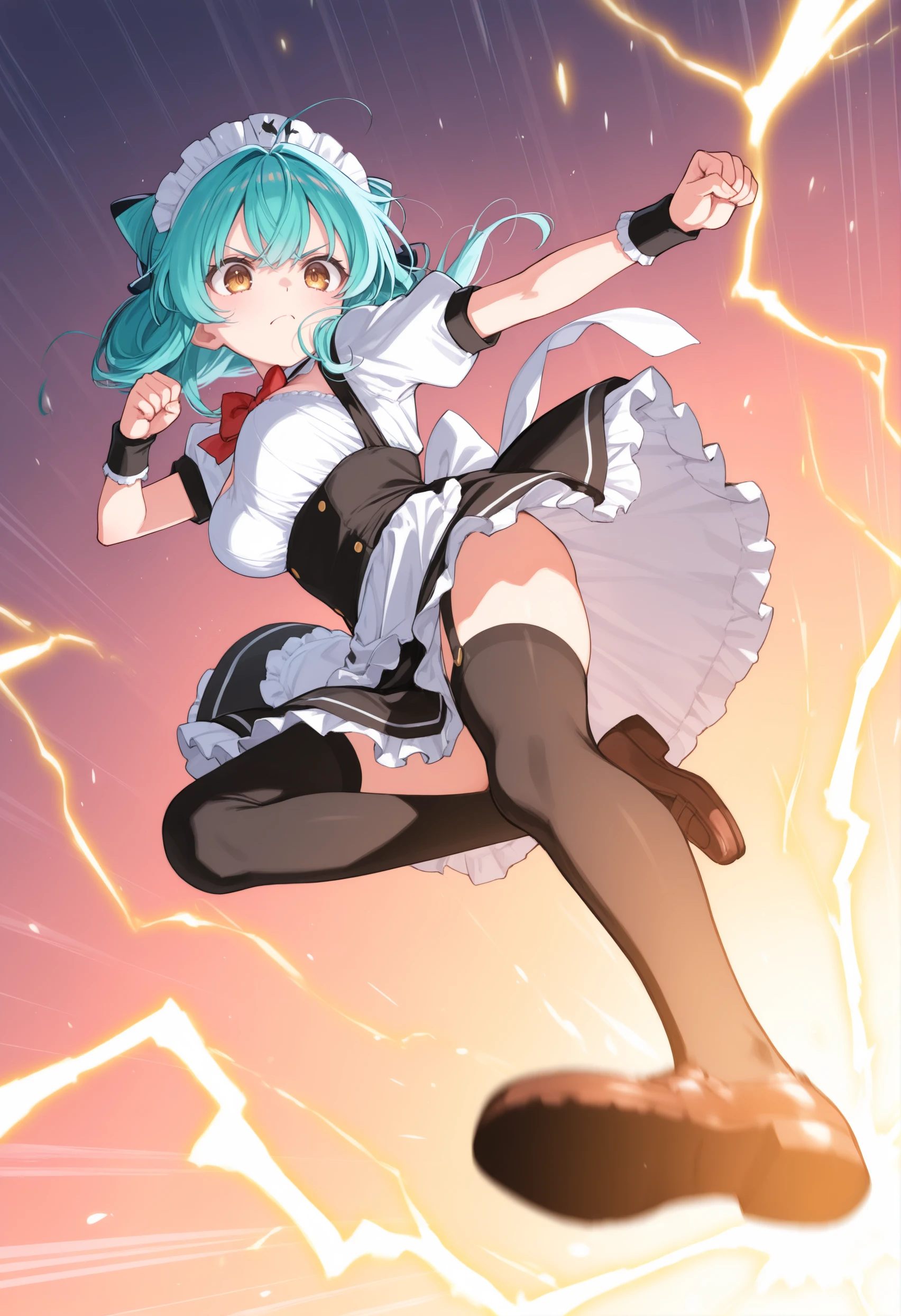 If you want to add a sense of dynamism and effects, you can use the following words: “flying kick,” “kicking,” “jumping,” “emphasis lines,” “incoming attack,” “flying,” “motion lines,” “motion blur,” and “lightning,” “sparks,” “fire,” “glowing,” and “glowing. If you want to add some dynamic effects, please add some special move-like prompts such as lightning, sparks, fire, glowing, explosion, and so on.