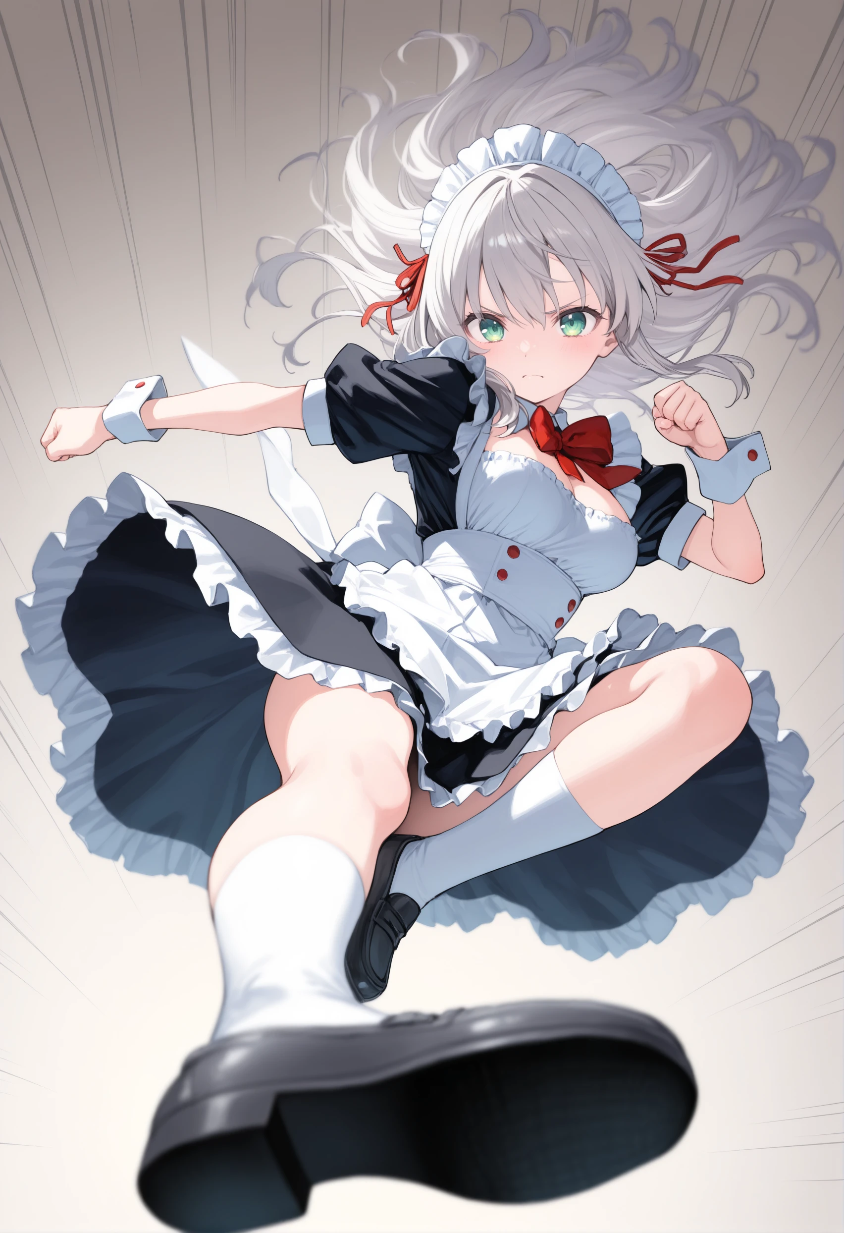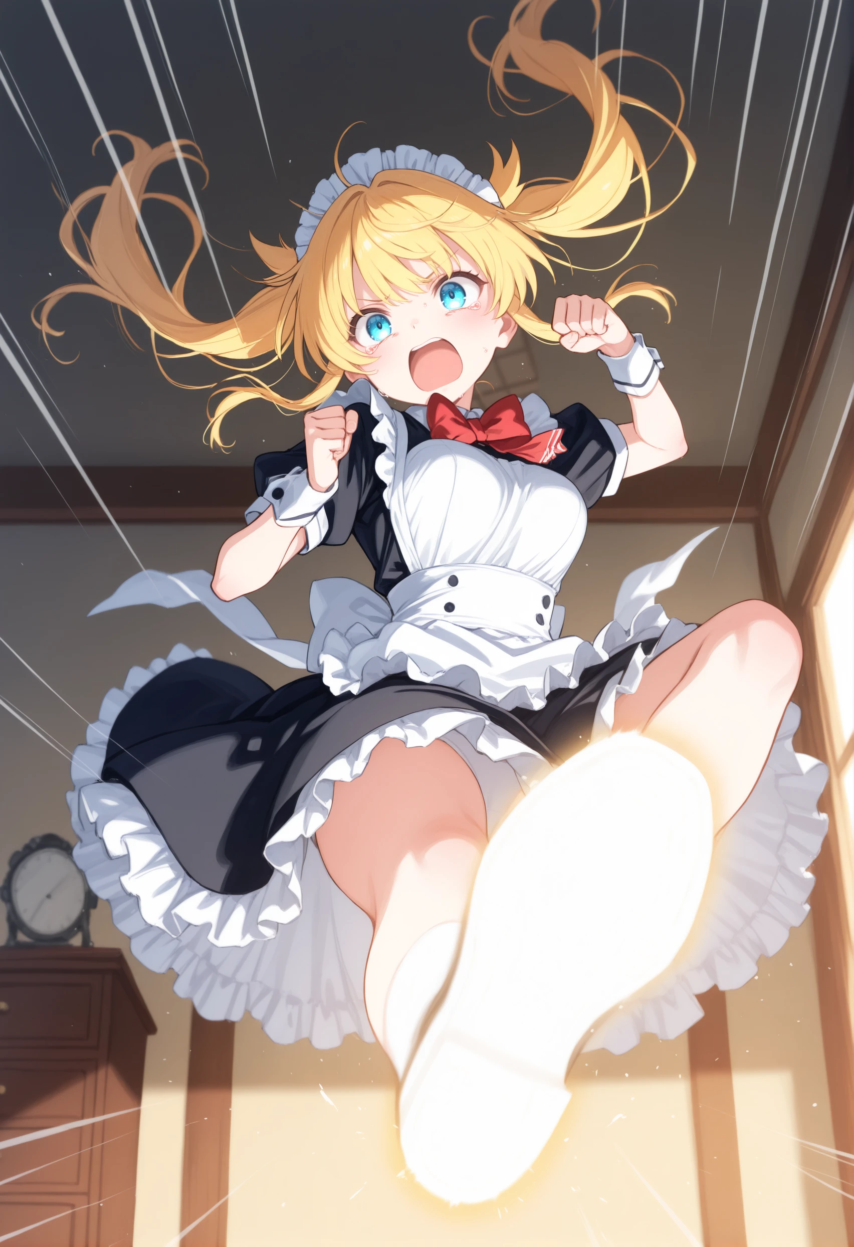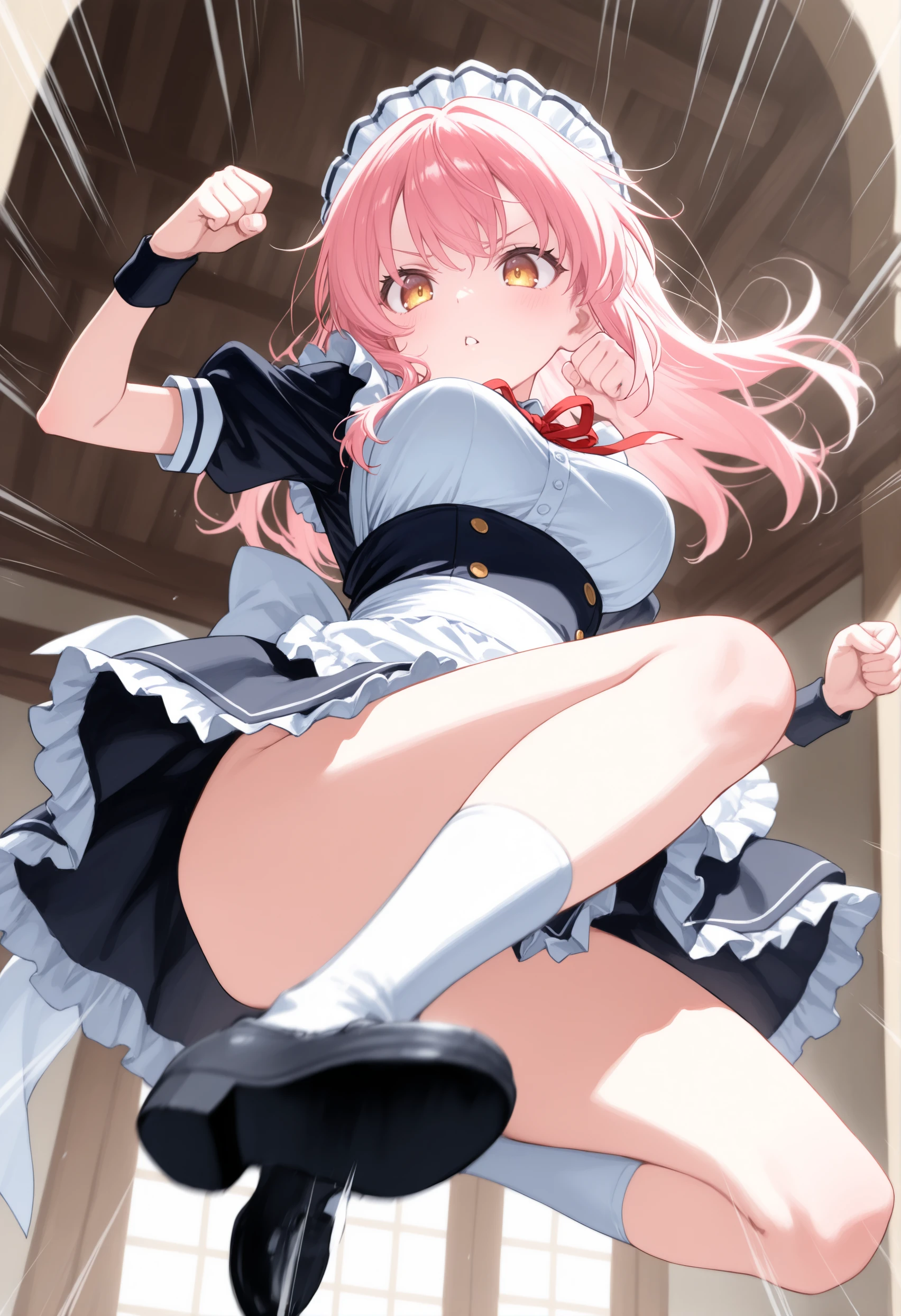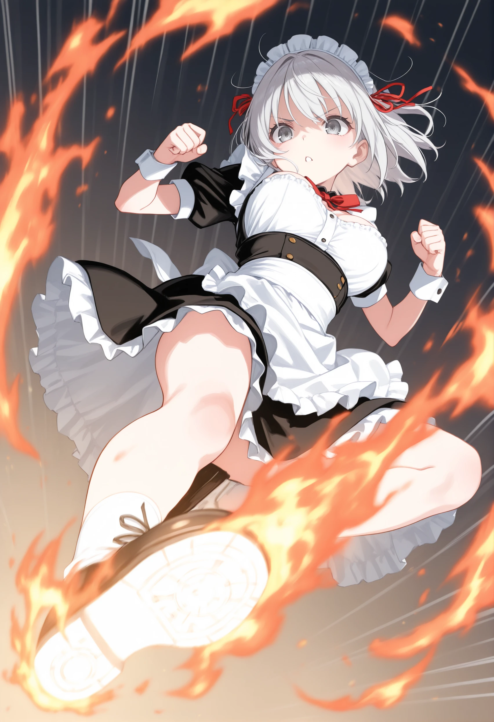 If you want to add a sense of dynamism and effects, you can use the following words: “flying kick,” “kicking,” “jumping,” “emphasis lines,” “incoming attack,” “flying,” “motion lines,” “motion blur,” and “lightning,” “sparks,” “fire,” “glowing,” and “glowing. If you want to add some dynamic effects, please add some special move-like prompts such as lightning, sparks, fire, glowing, explosion, and so on.