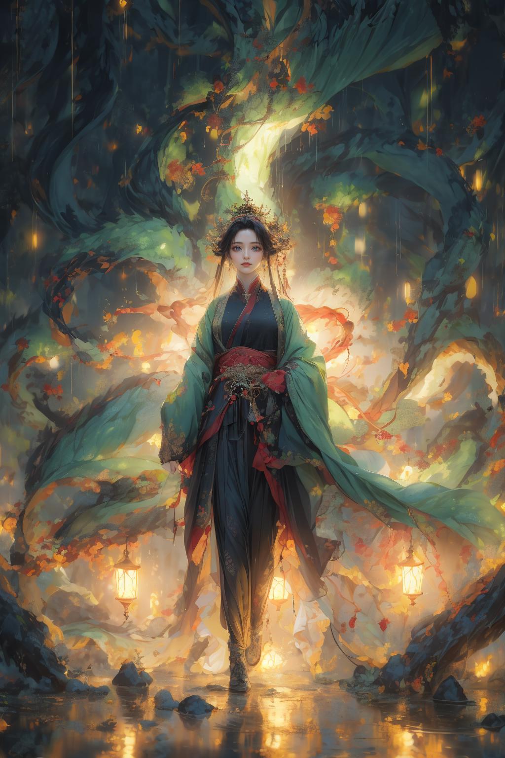 There is a legend in China that the nine sons of the dragon are different. This is a lora of characters + dragons + background. It is inspired by the Nine Dragons Wall of the National Palace Museum of China and various illustrations about Chinese dragons. The weight of lora is recommended to be 0.4-0.7. Sampler Recommended DPM++2M, DPM++2SA, trigger words: dragon, sword, ooo, sky, standing. When the weight of lora reaches above 0.6, the modification of the background layer will be triggered. This lora is suitable for real-life models and 2D models, please refer to my example image for specific parameters.