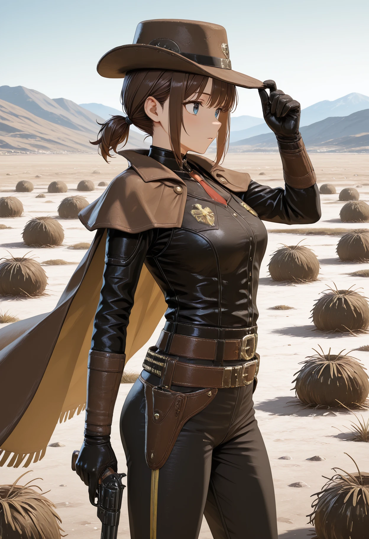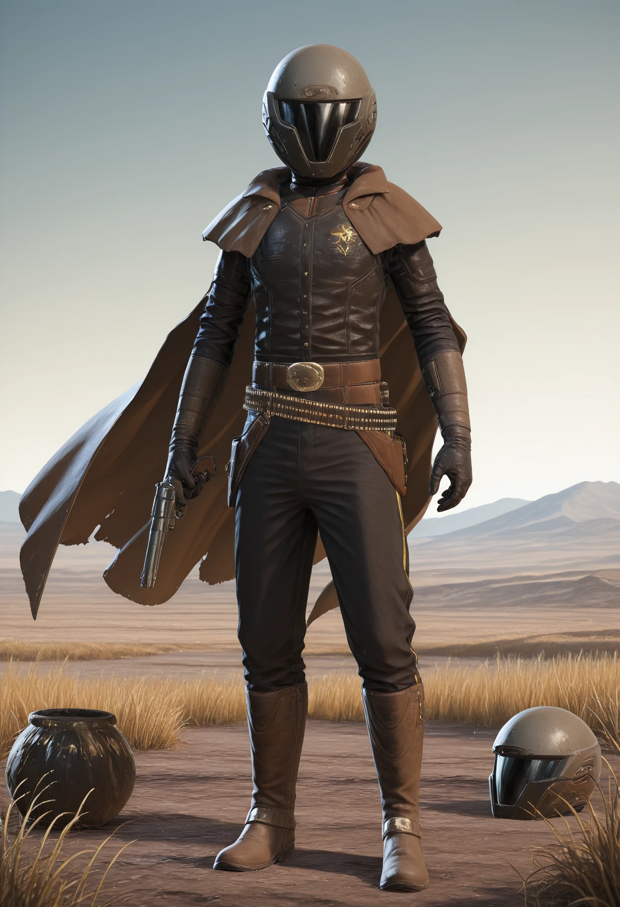 The armor has a Western sheriff style, but the helmet is not satisfactory; I suggest replacing it with a cowboy hat.