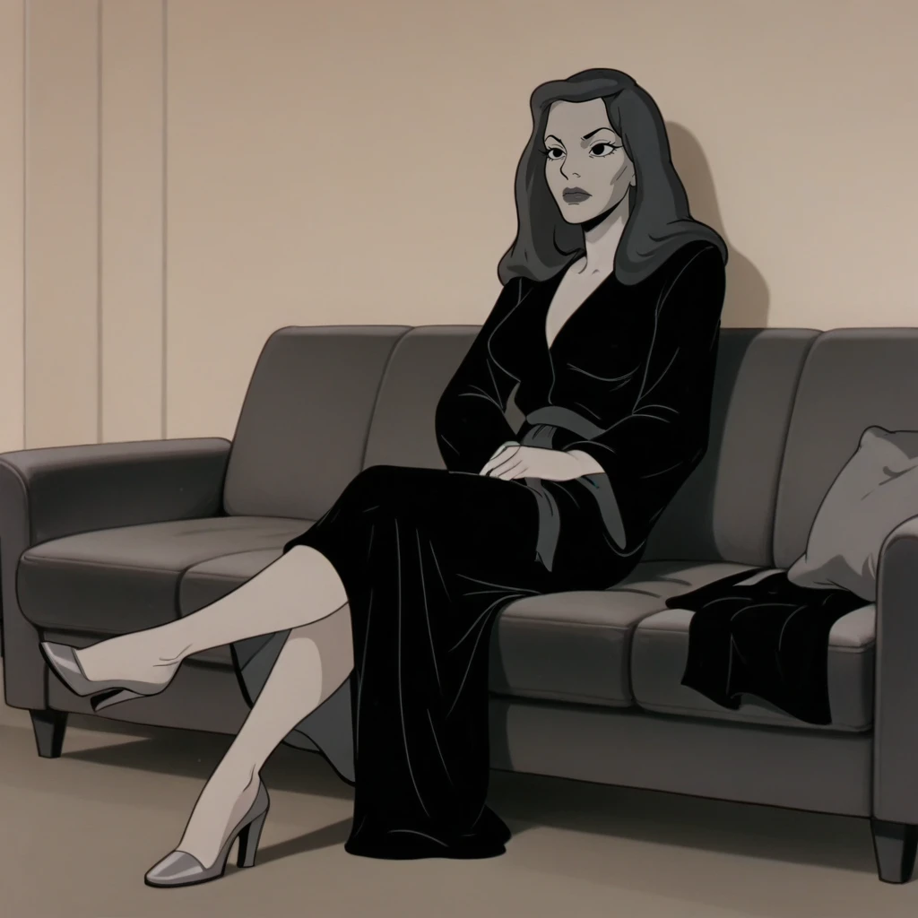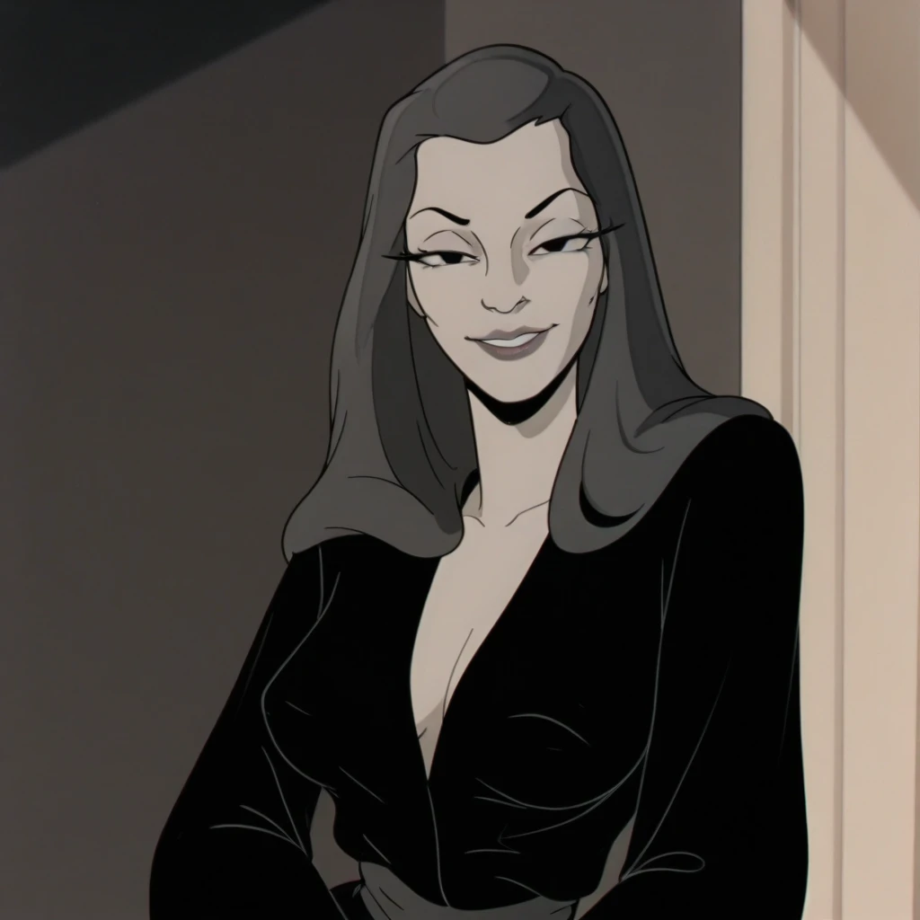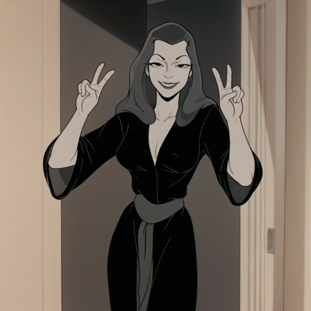 lauriebeecool, parody, 1girl, solo, long hair, black eyes, black night robe