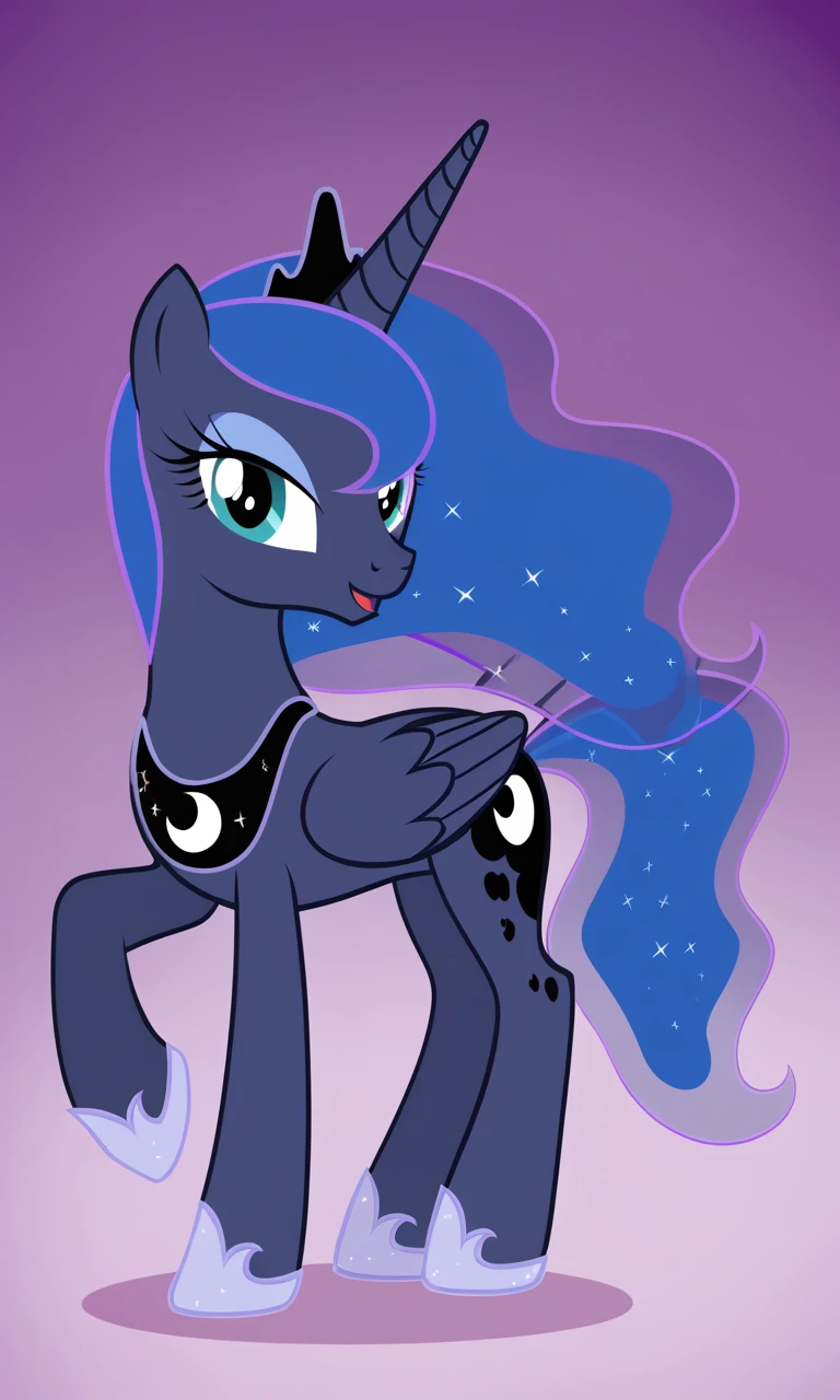 Princess Luna, My Little Pony, ethereal mane, folded wings, horseshoes for hooves, horseshoes for hooves, mare, at