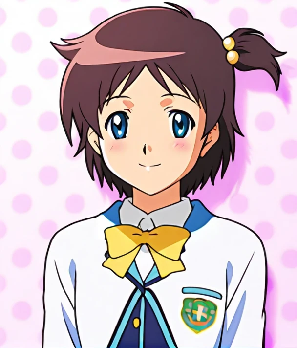 Anime Coloring,<lora:Mizuki Haruna - Tokimeki Memorial4 1.3:0.8> 1girl. short hair ,blue eyes ,brown hair, hair ornament,side ponytail ,hair bobbles ,.small , bangs