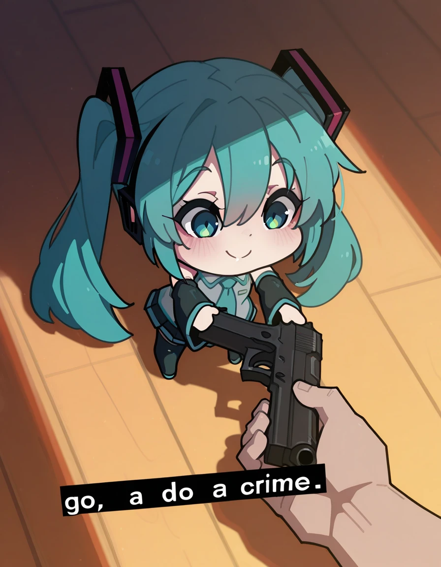 1girl,hatsune miku,"then offer an object for the lil fella example "