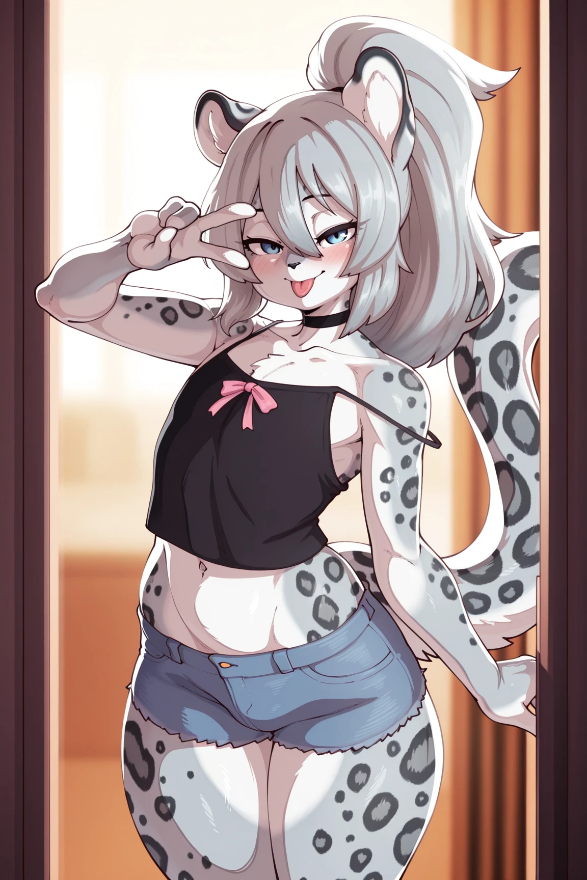masterpiece, best quality, amazing quality, very aesthetic, high resolution, ultra-detailed, absurdres, newest, scenery, depth of field, scenery, volumetric lighting, by dmxwoops, monochrome, greyscale, furry, furry female, anthro, animal ears, animal nose, snout, zootopia, judy hopps, lagomorph, rabbit, dark grey eyes, grey fur, body fur, 1girl, solo, ????????????, ?????????, cleavage, black panties, navel, black shirt, looking at viewer, blush, open mouth, teeth, tongue, one hand on ????, tigh gap, highleg panties, ?????????, crop top, voluptuous, curvy figure, white backgroundPrompt (Negative)