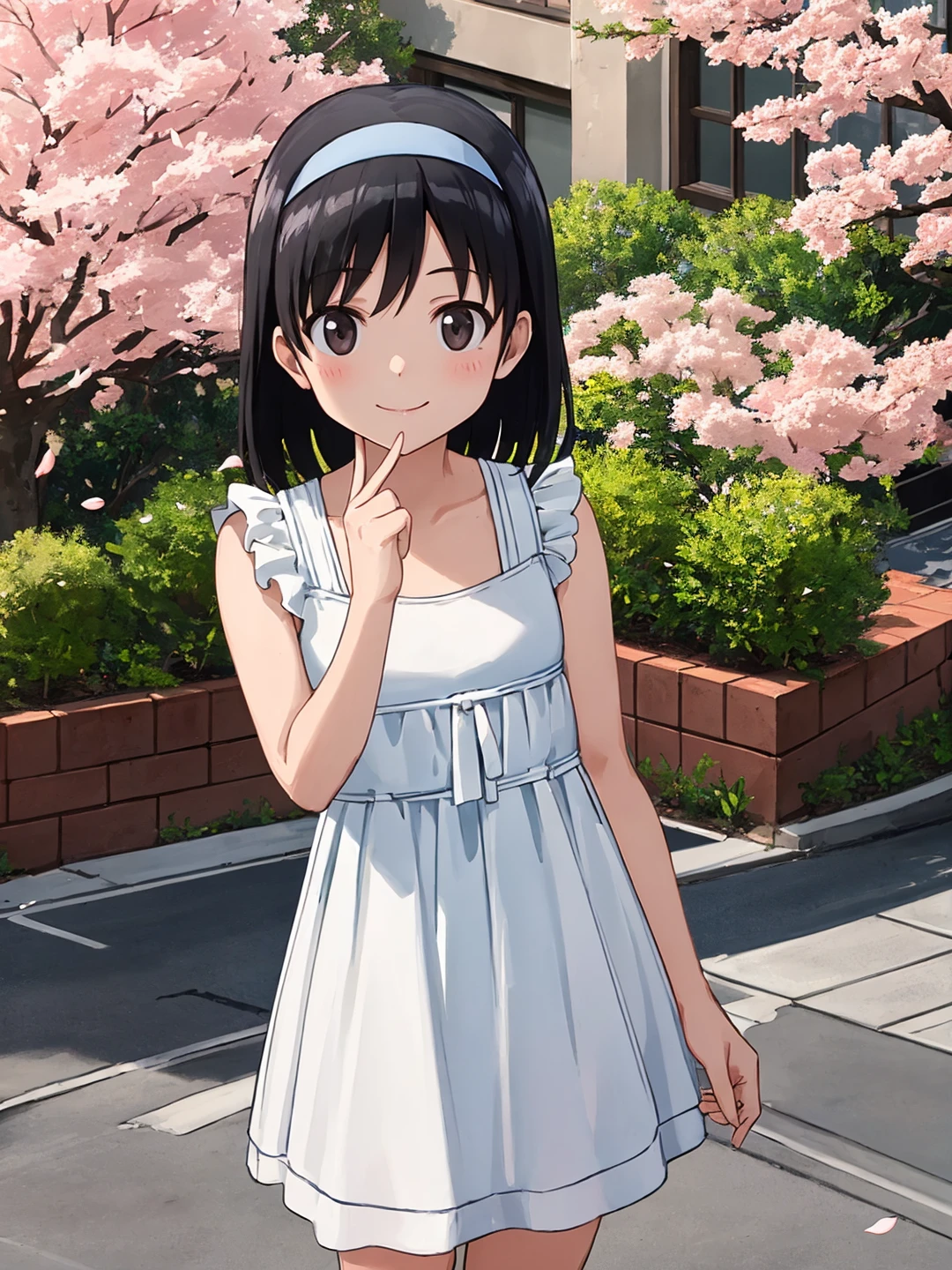 Season 1 appearance (brown hair):nogiwamami_s1, brown hair, medium hair, black eyes, hairband