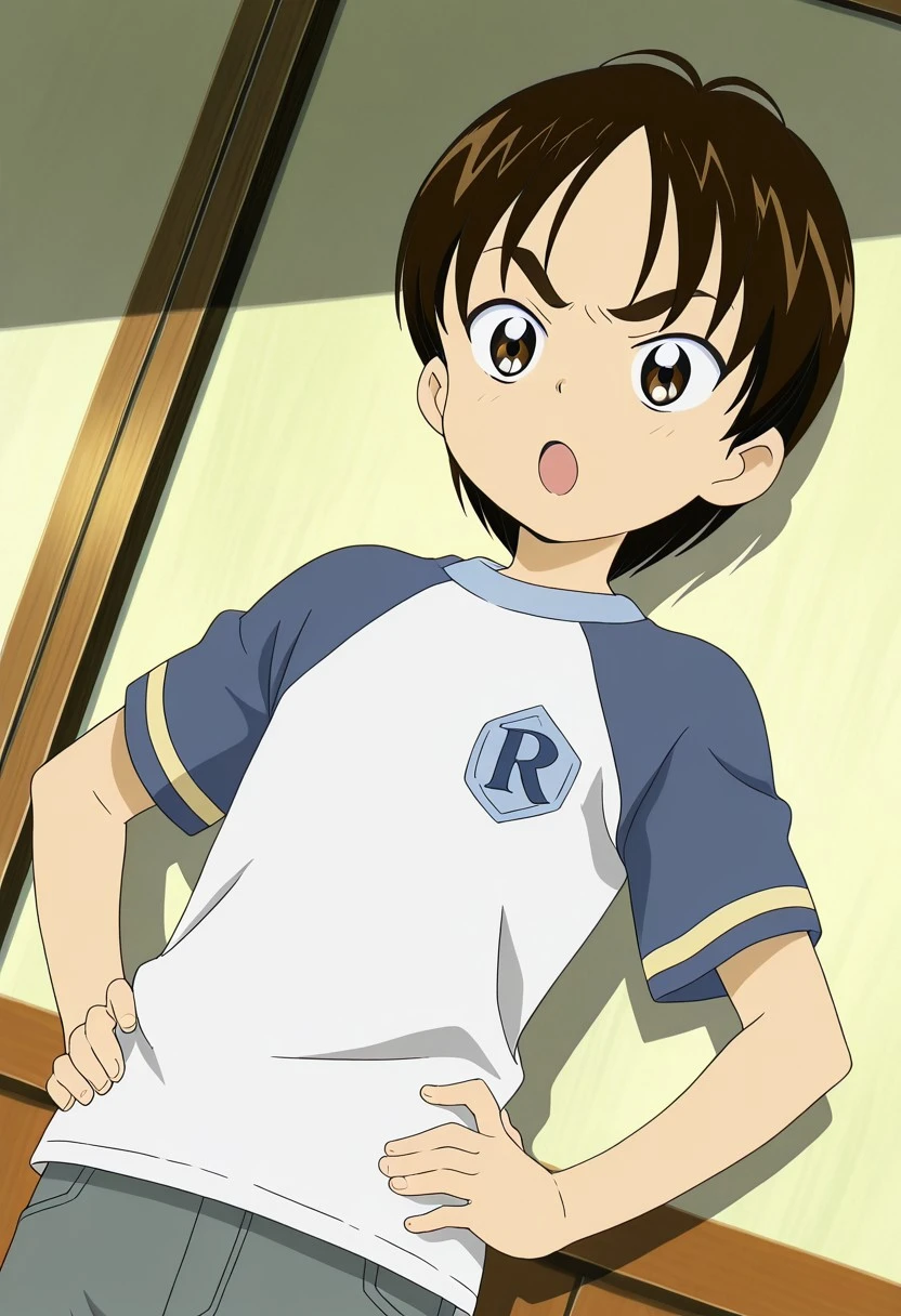 Ryouta Misumi,short hair,brown hair,brown eyes,shirt,raglan sleeves,pants,
