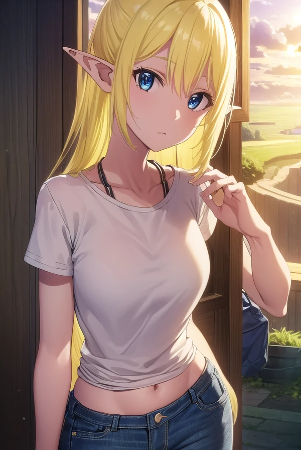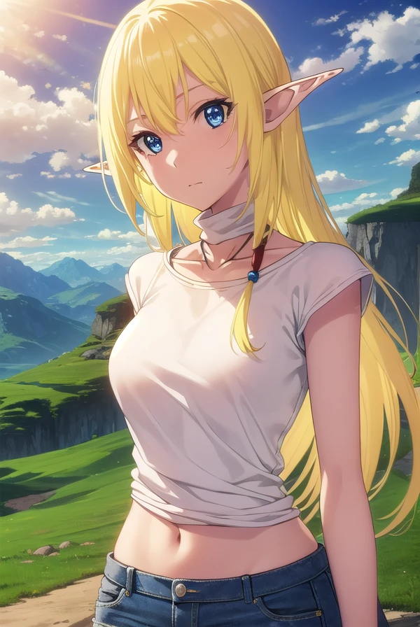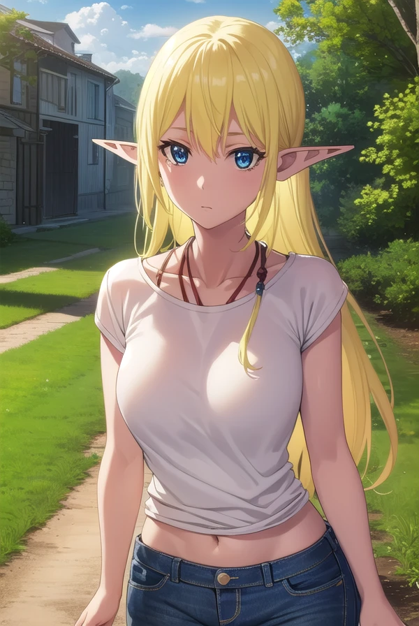 tuka luna marceau, long hair, blonde hair, pointy ears, elf, blue eyes,