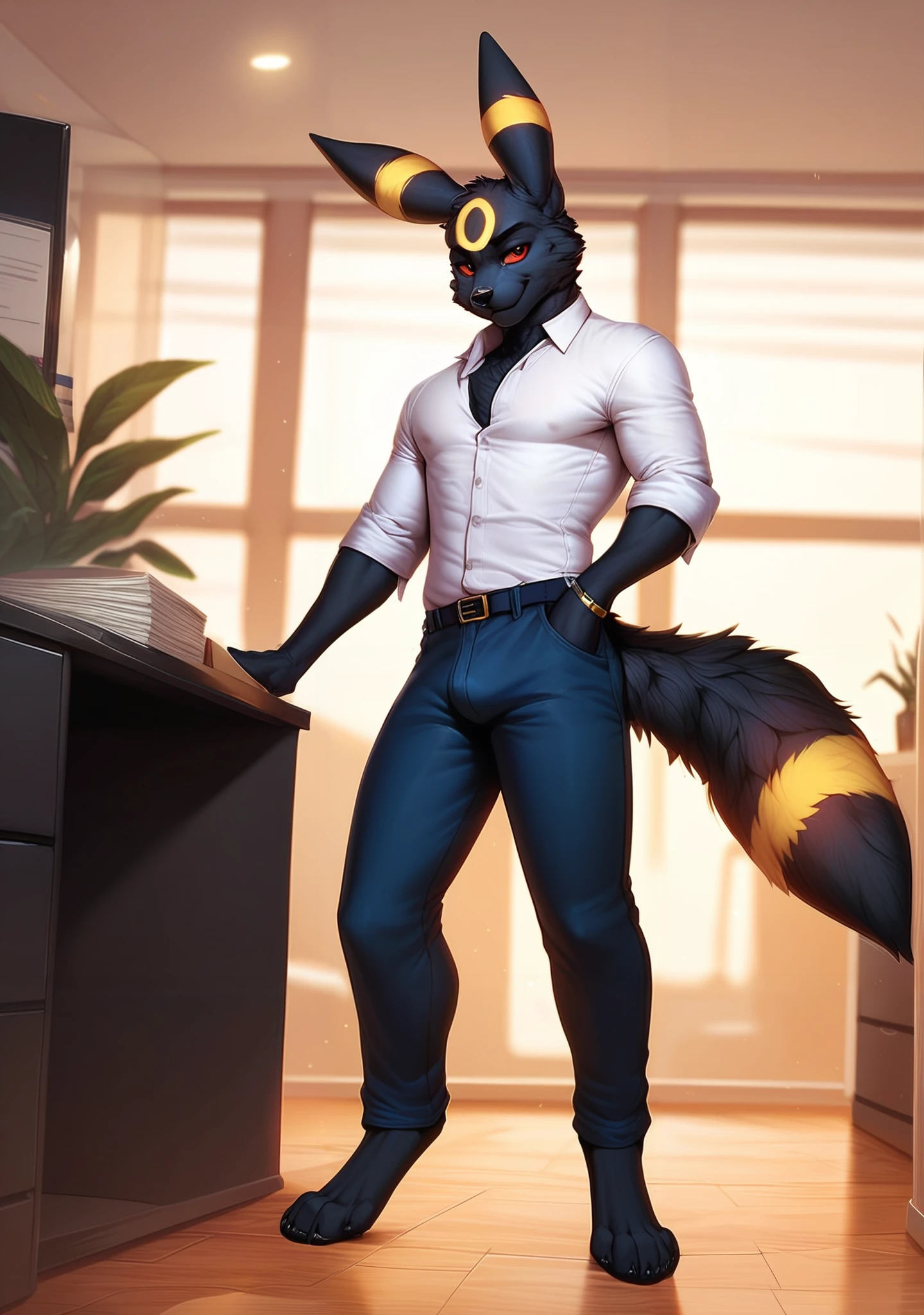 Lora is trained on about 300 different images of Umbreon both male, female, feral and anthro as well as SHINY!!!. This LoRA does a good job at feral genitalia as well as human it also does clothing alright as well as duo m/m m/f f/f scenes as well. the LoRA weight seems to work best at 0.8 but if you're using other LoRA's like Art styles or other characters it seems to work well anywhere from 0.4 to 0.6.