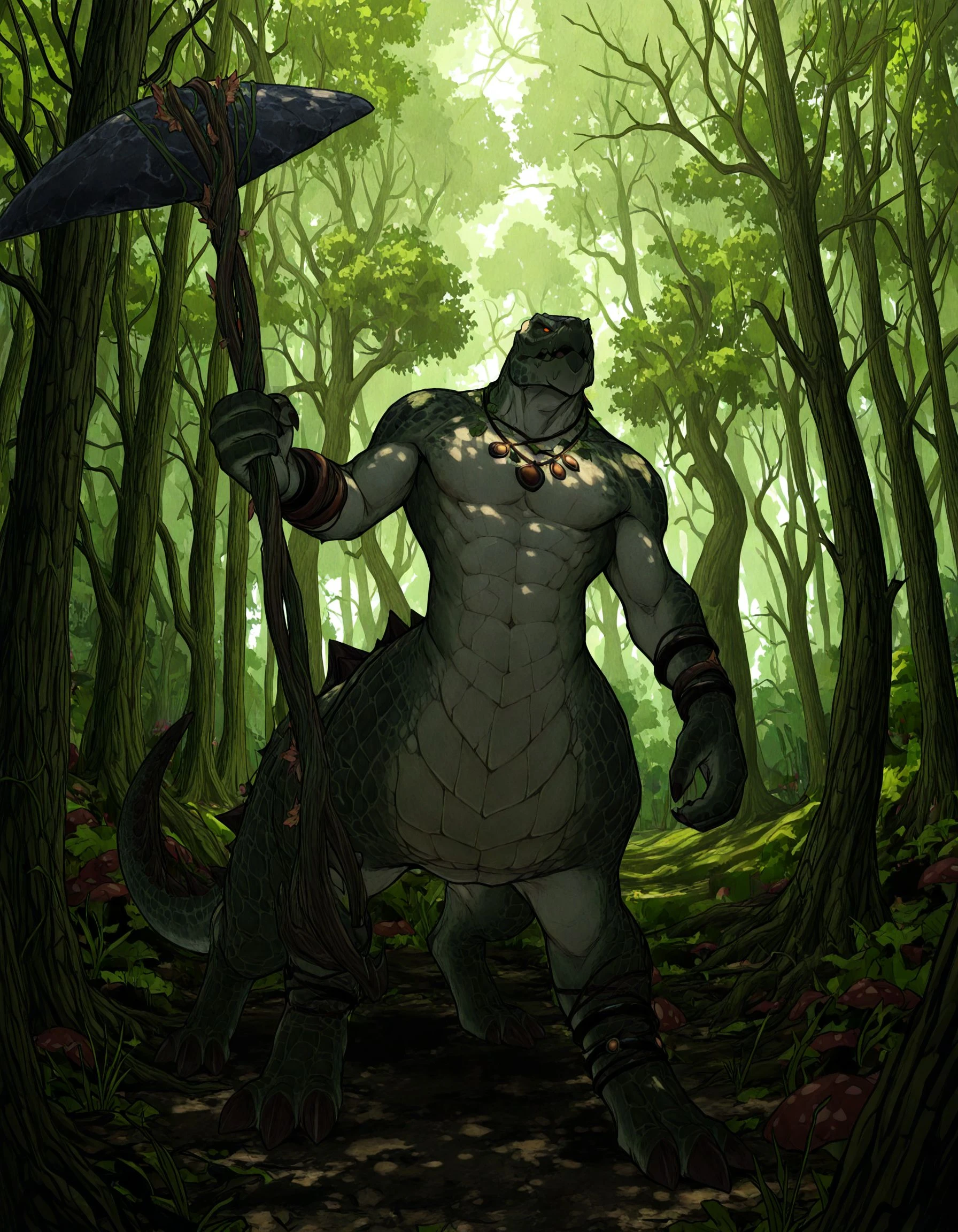 Zoat, dinosaur, bracelet, holding weapon,Let me know what other Warhammer LORAs you'd be keen to see!