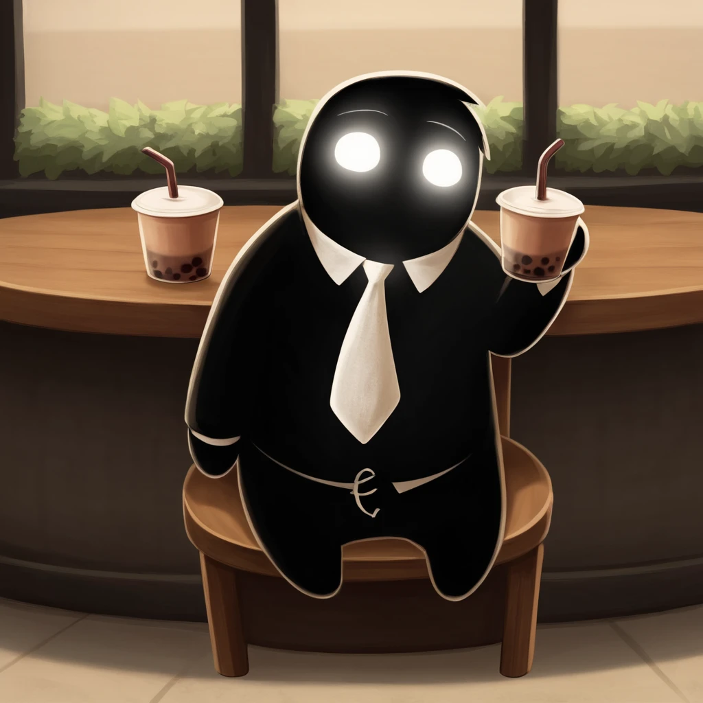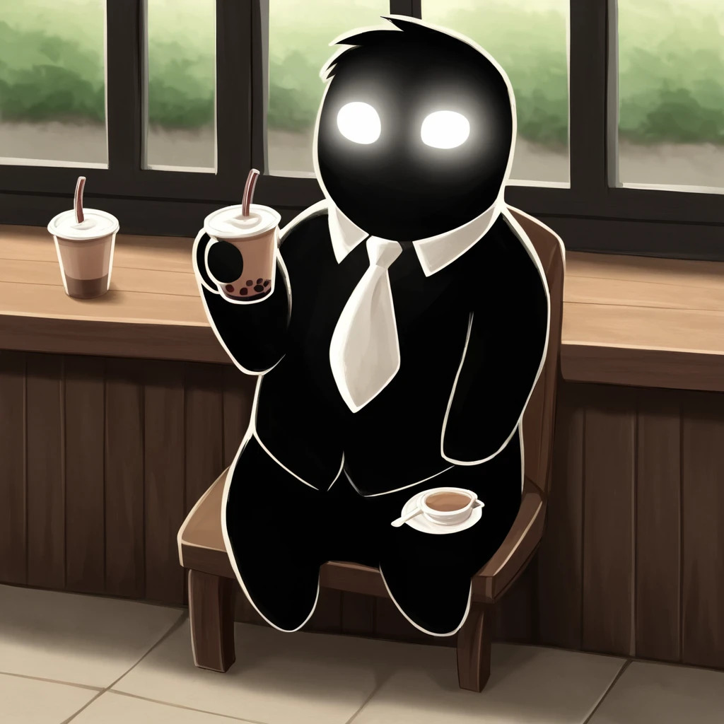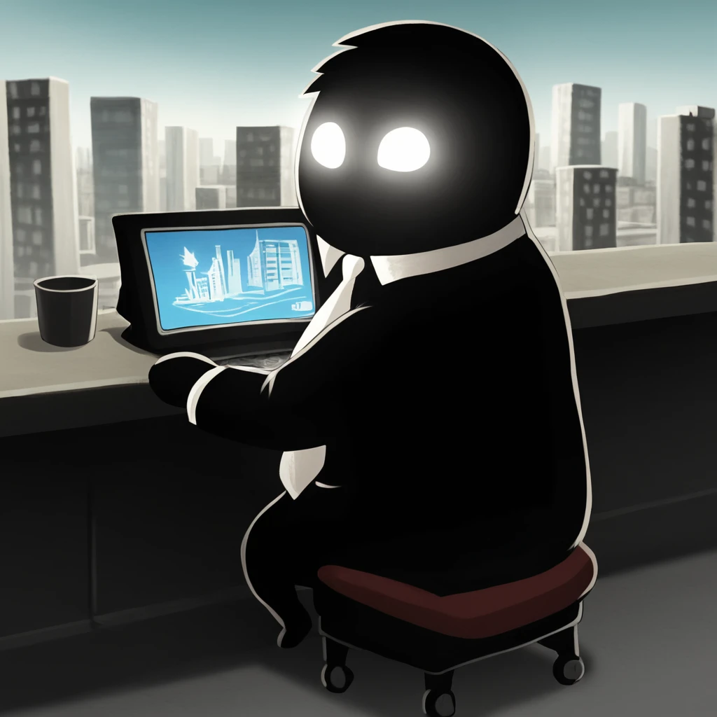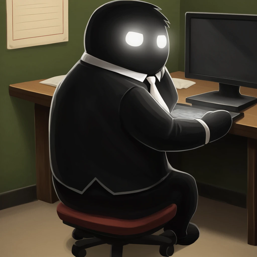 My recomendation to use this tags: no mounth, silhouette, necktie, glowing eyes