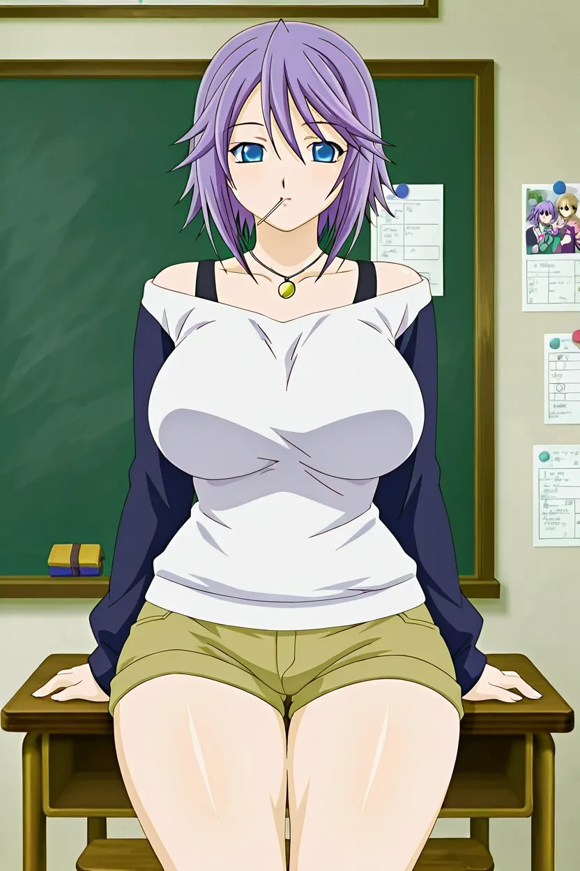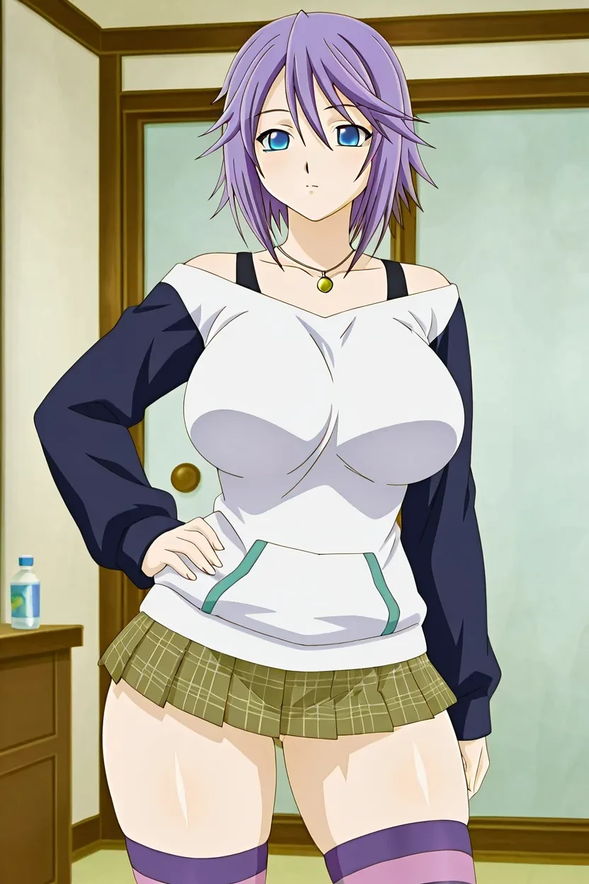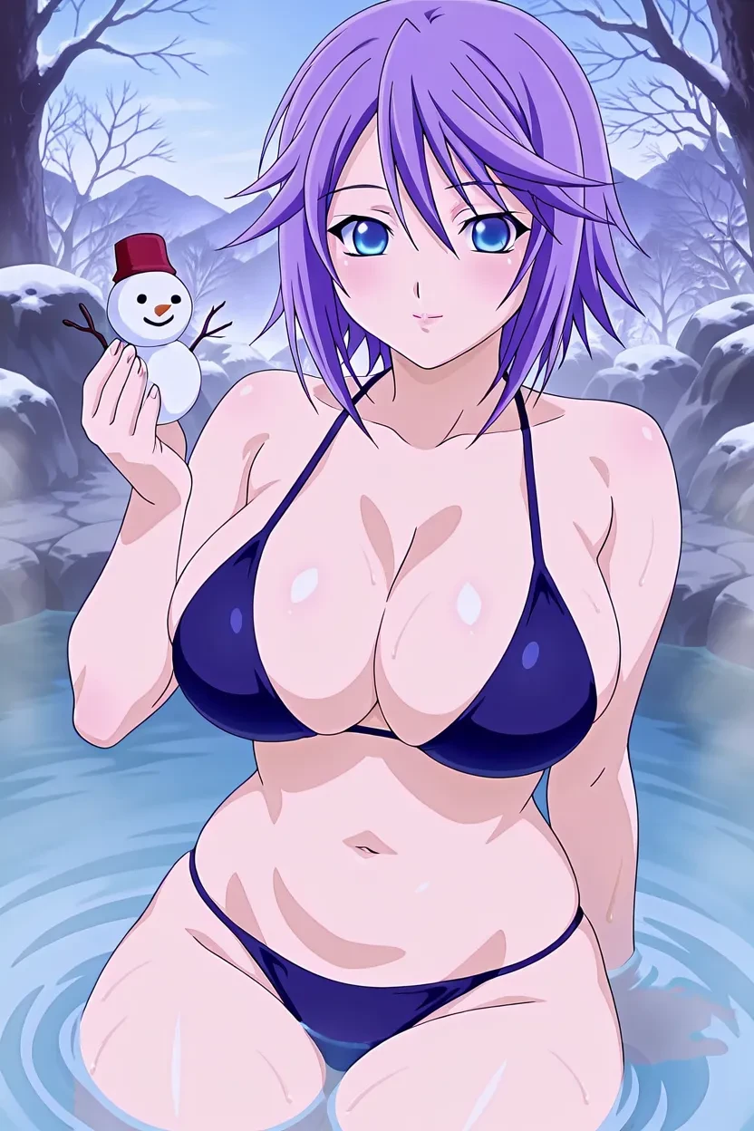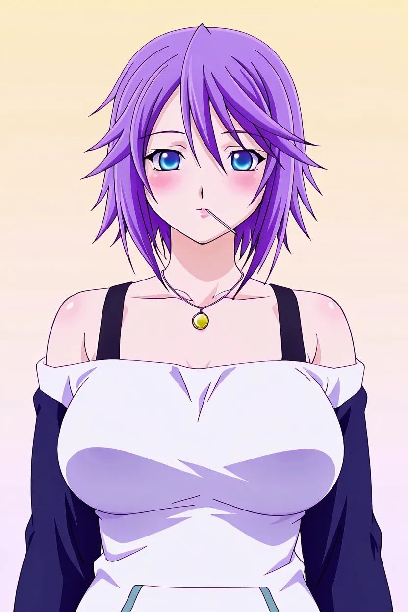 1girl, Mizore Shirayuki (Rosario + Vampire), short hair, purple hair, blue eyes, glossy lips, thick lips, Rosario + Vampire_art_Style, 8k, HD, high resolution, flawless, superb quality