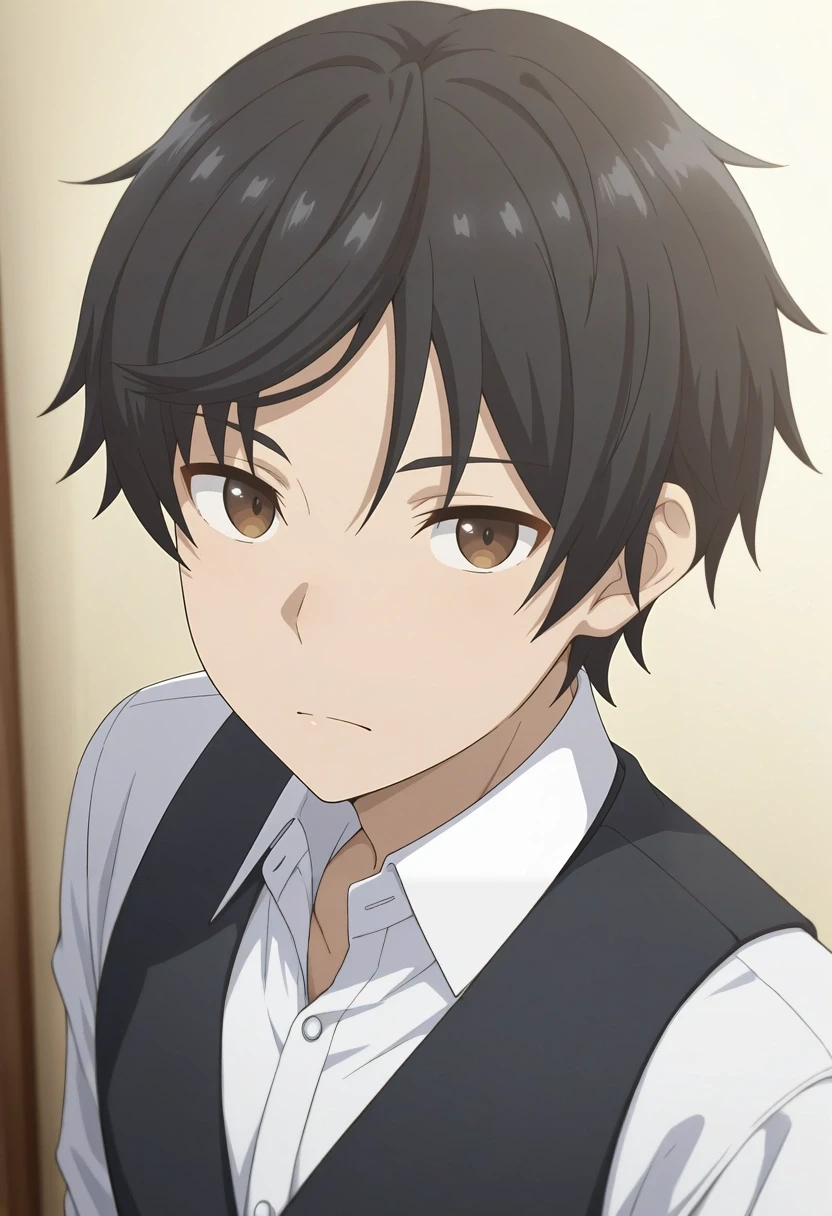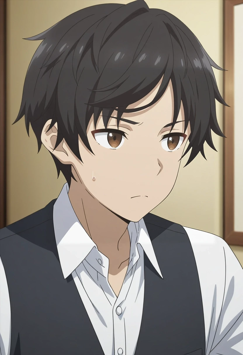 mizuto_irido, black hair, brown eyes, short hair, bangs