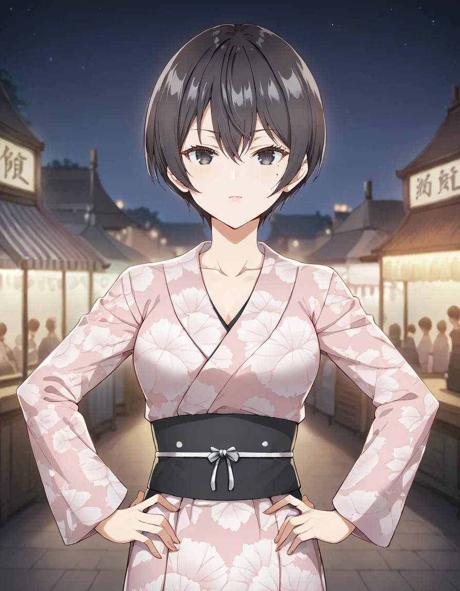 chisaki sarashina, black hair, short hair, hair between eyes, black eyes, (mole under eye:0.7)