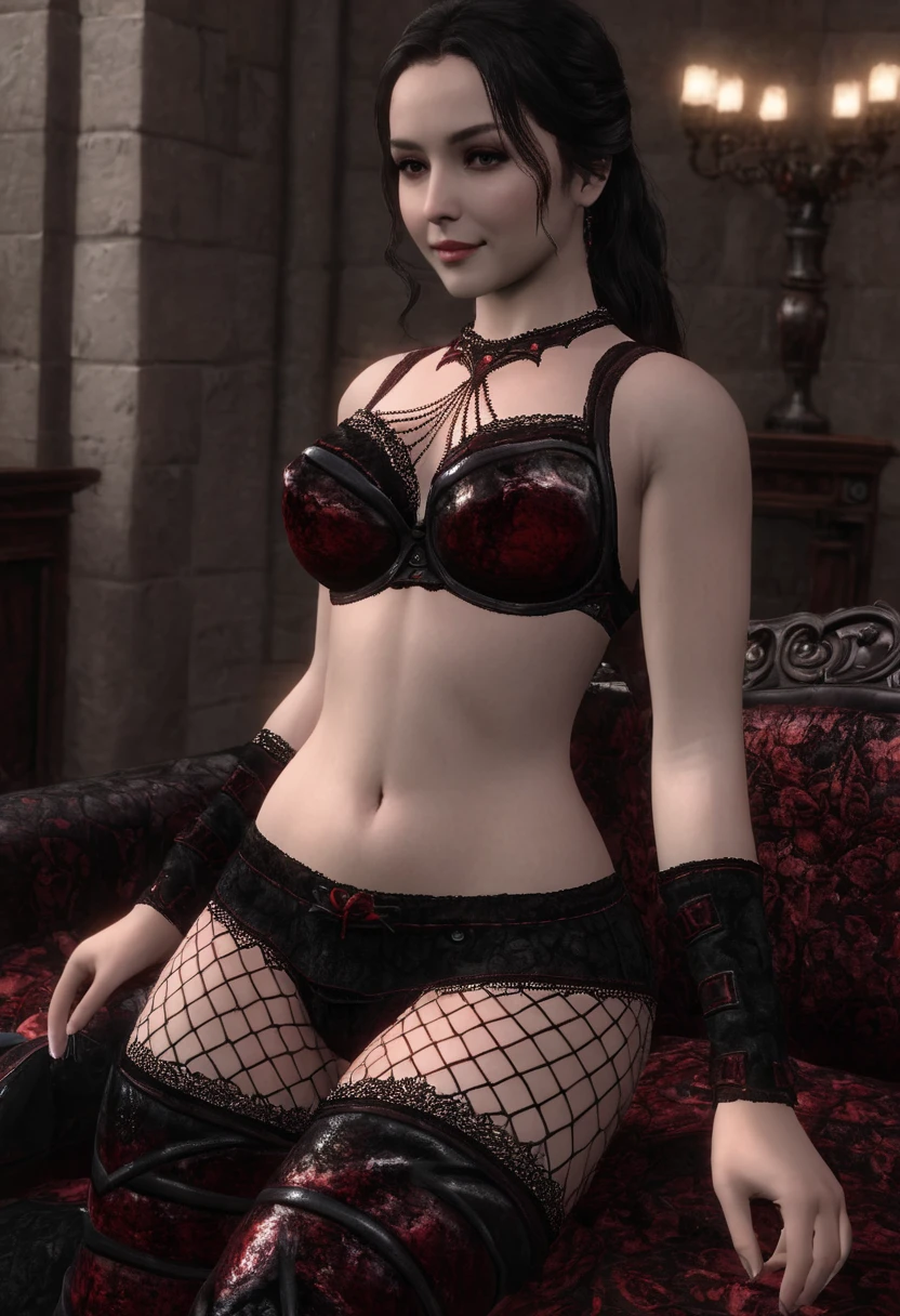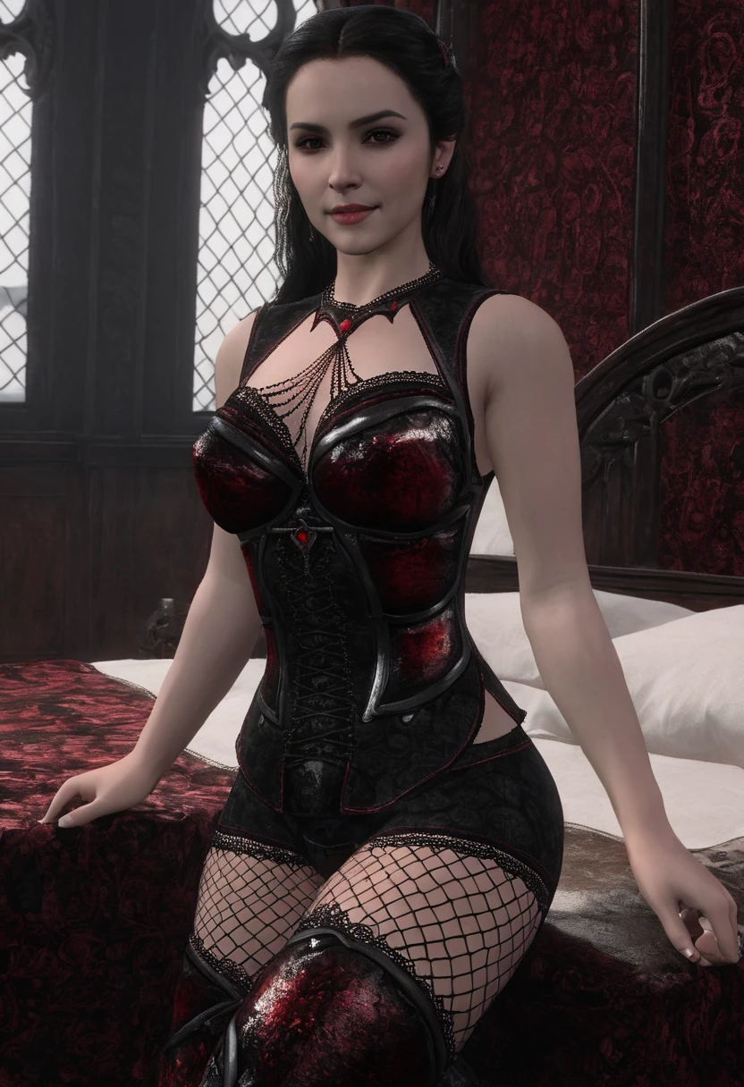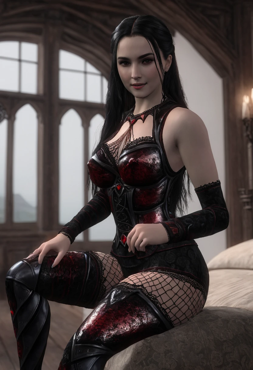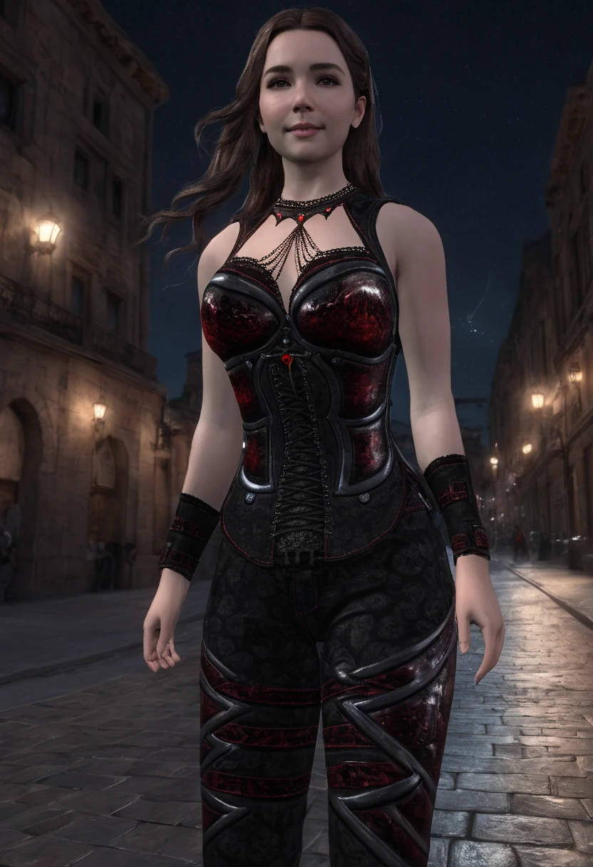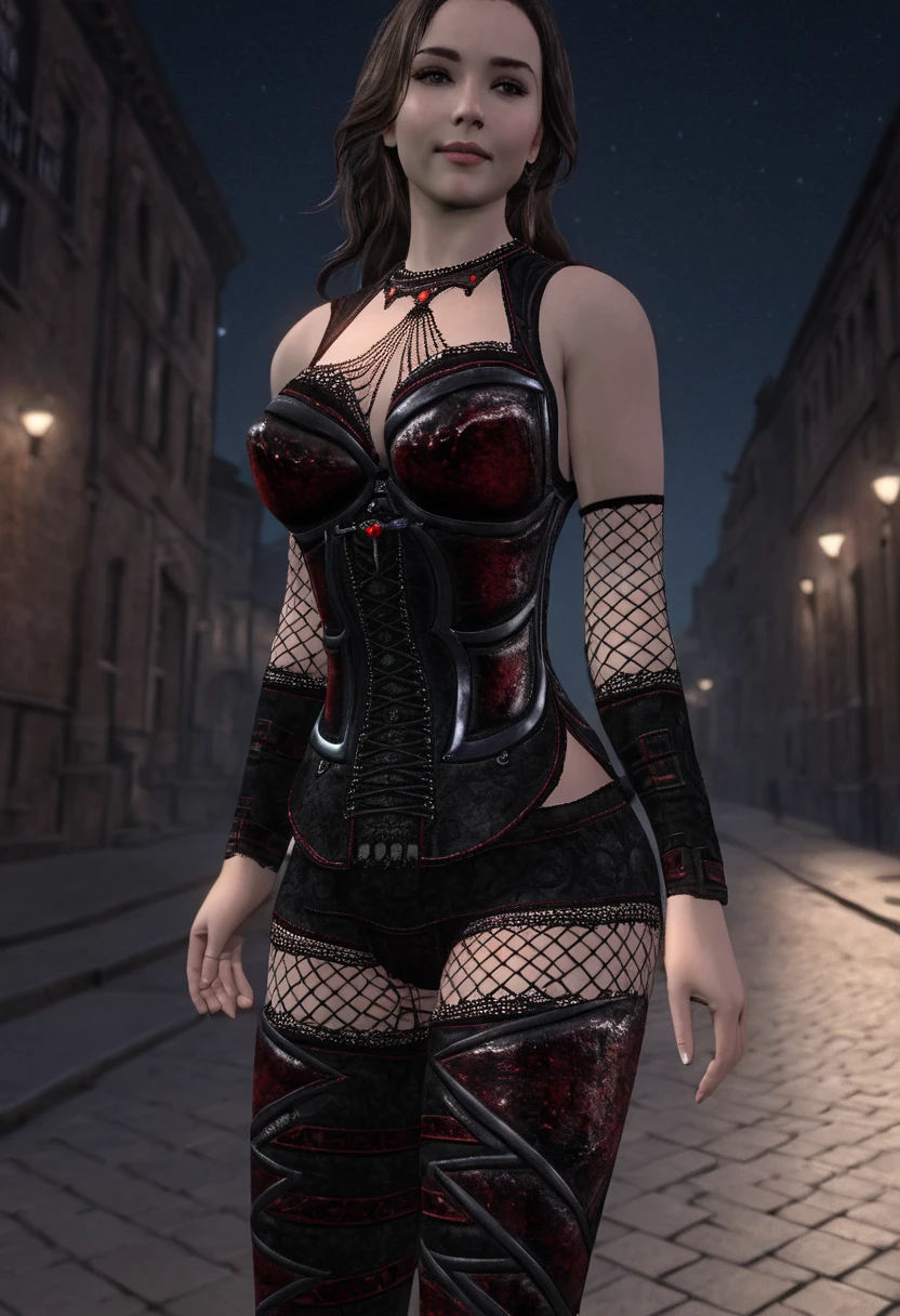 Black and red leather clothes with some lace. Gothic and glamorous.