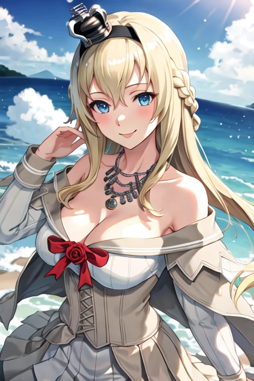 The trigger word is warspite_kantaicollection, and the recommended tags are best quality, masterpiece, highres, solo, {warspite_kantaicollection:1.15}, blonde_hair, long_hair, blue_eyes, braid, french_braid, hairband, crown, mini_crown, breasts, hair_between_eyes, smile, flower, large_breasts.