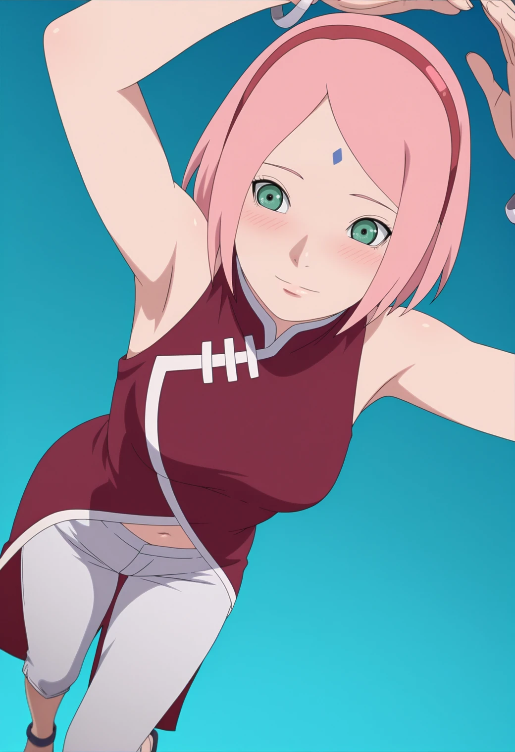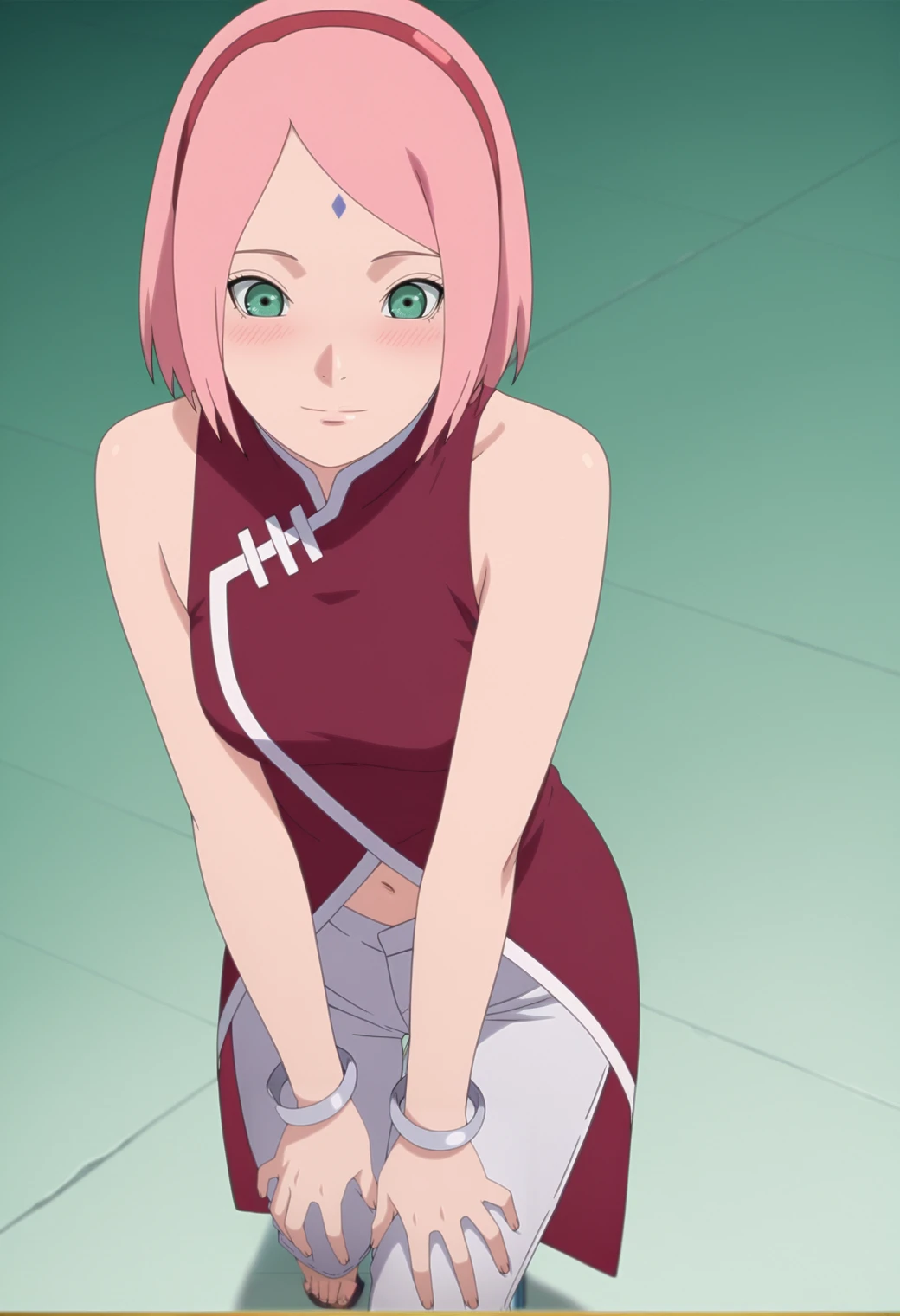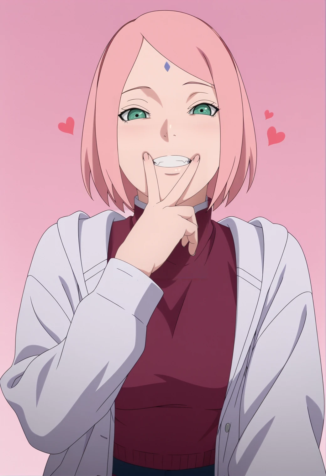 haruno sakura, pink hair, green eyes, forehead mark, bob cut