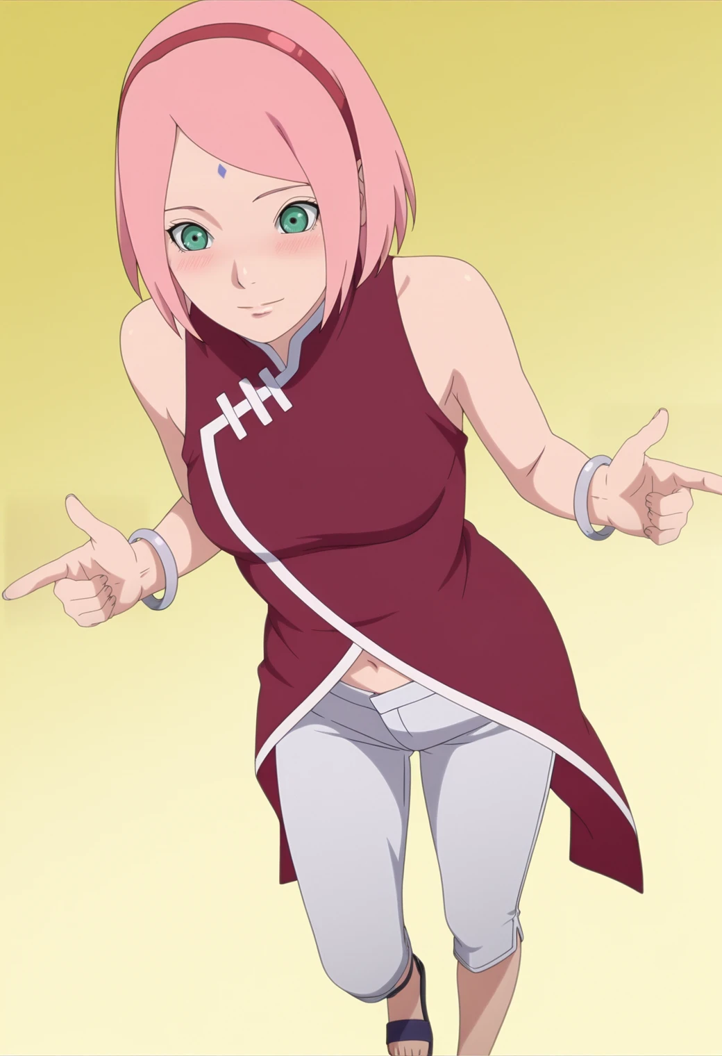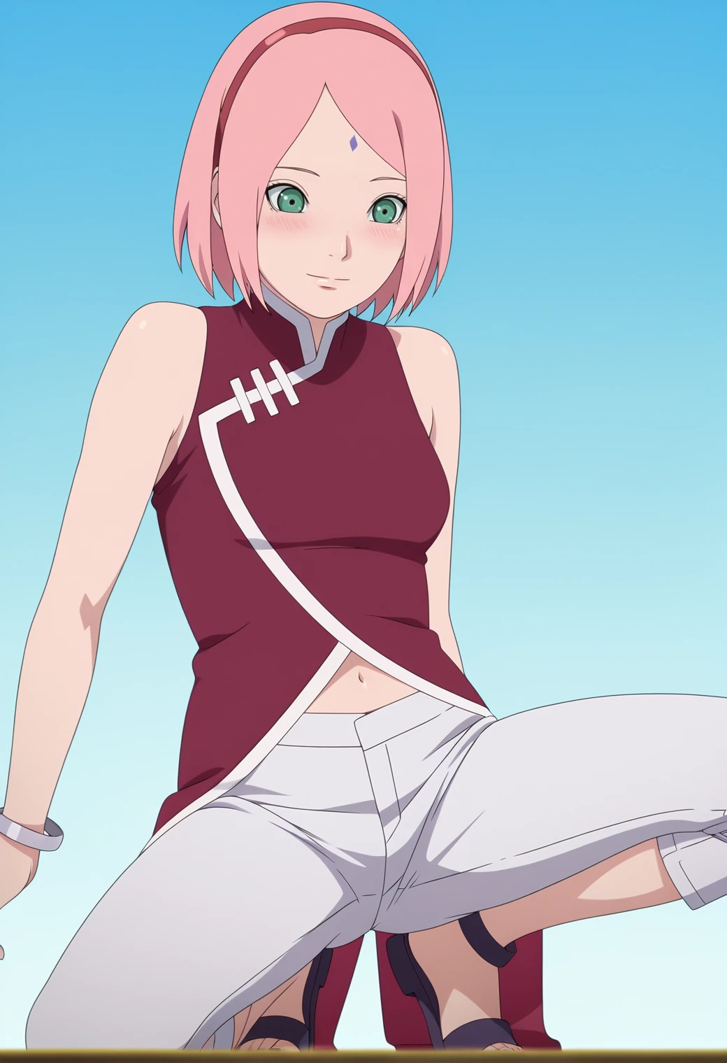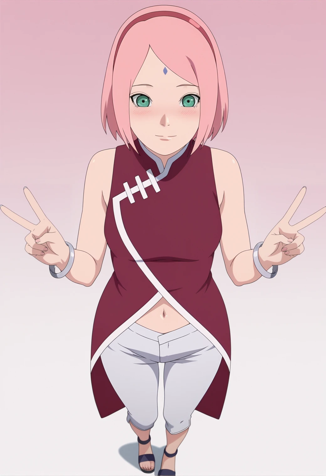 haruno sakura, pink hair, green eyes, forehead mark, bob cut