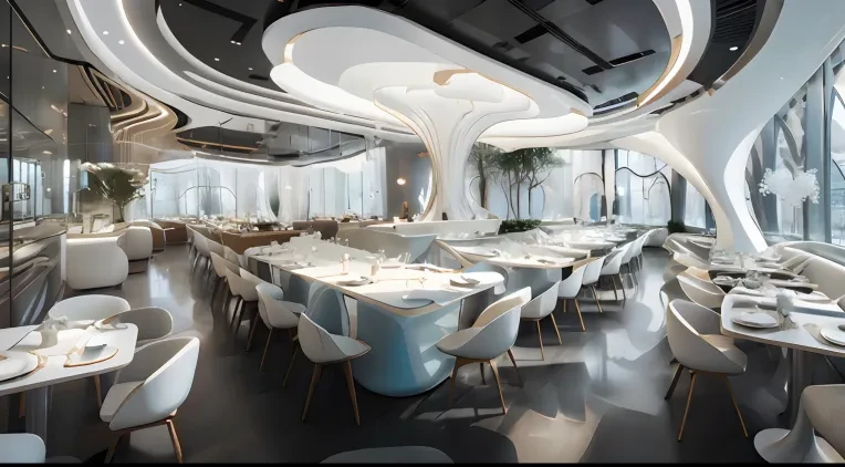 Smooth restaurant space design, atmospheric restaurant space design, conceptual space design with a strong sense of