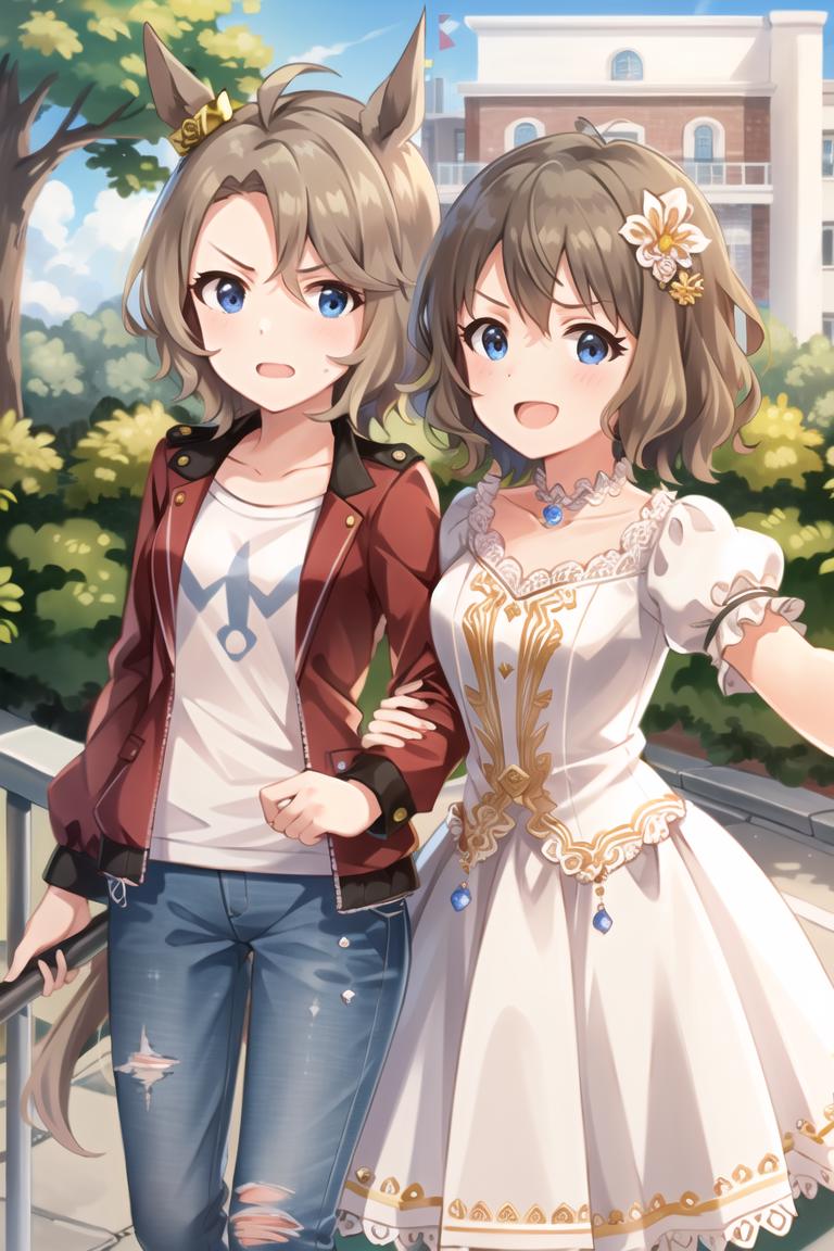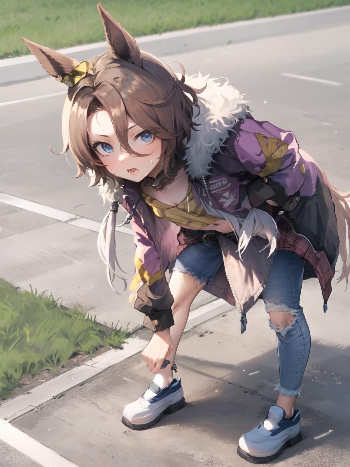 horse girl, horse tail, brown hair, blue eyes, etc.