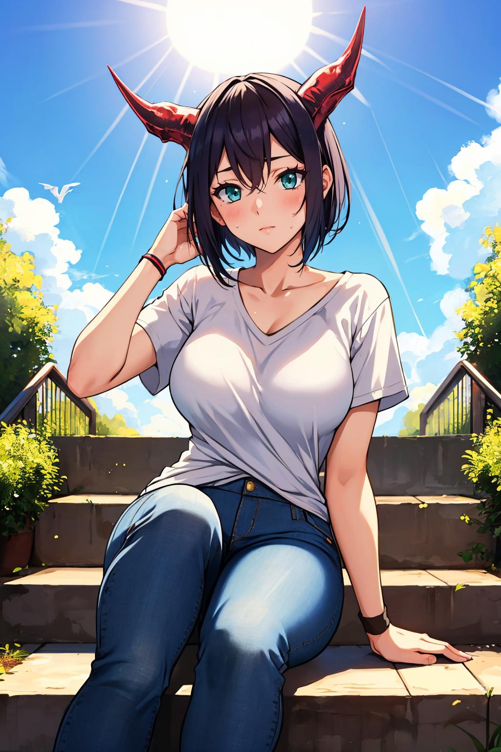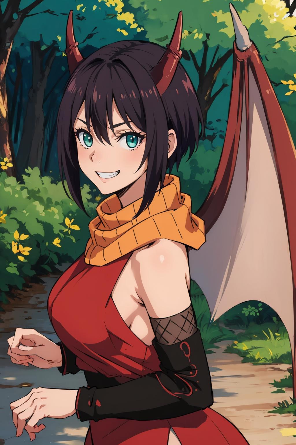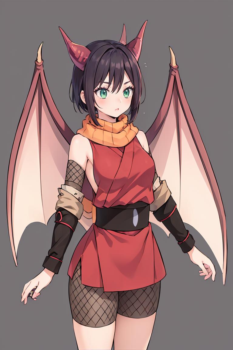 Add "dragon horns, dragon wings" to add her wings and horn.