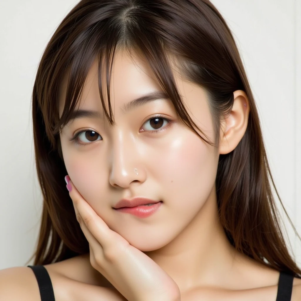biting her lower lips