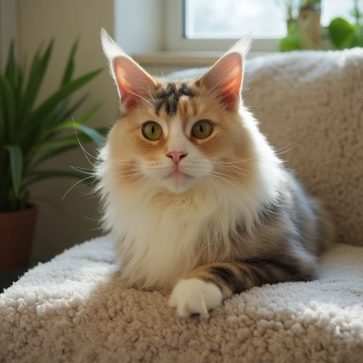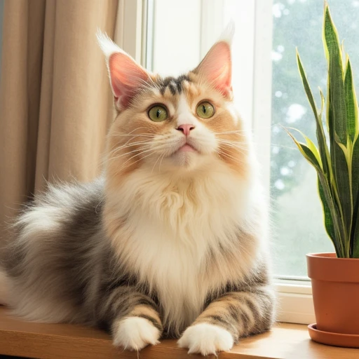 This LORA is trained on images of a stunning long-haired calico cat with mesmerizing green eyes. The model captures the cat's unique features, including its predominantly white face with delicate orange markings, and its luxurious fur that blends patches of white, orange, and black. This LORA is ideal for generating images of elegant, fluffy cats with striking colorations and expressive eyes. Perfect for creating cozy scenes, pet portraits, or adding a touch of feline beauty to various artistic compositions. As my first shared LORA, I hope it brings joy to other cat lovers and digital artists in the community!