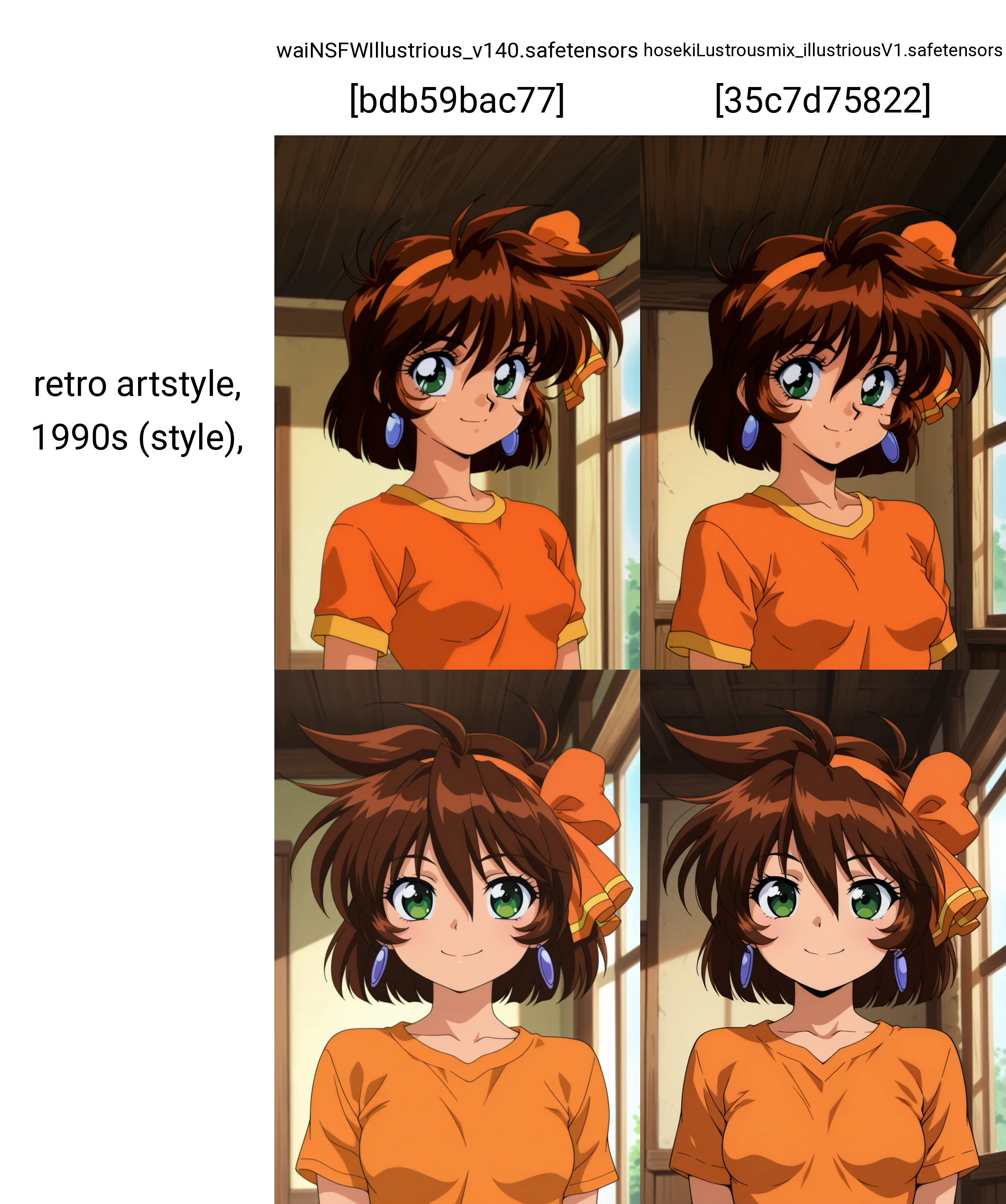 Even when using a model that isn’t anime-specific, it’s still recommended to include “retro artstyle, 1990s (style)” for better results.