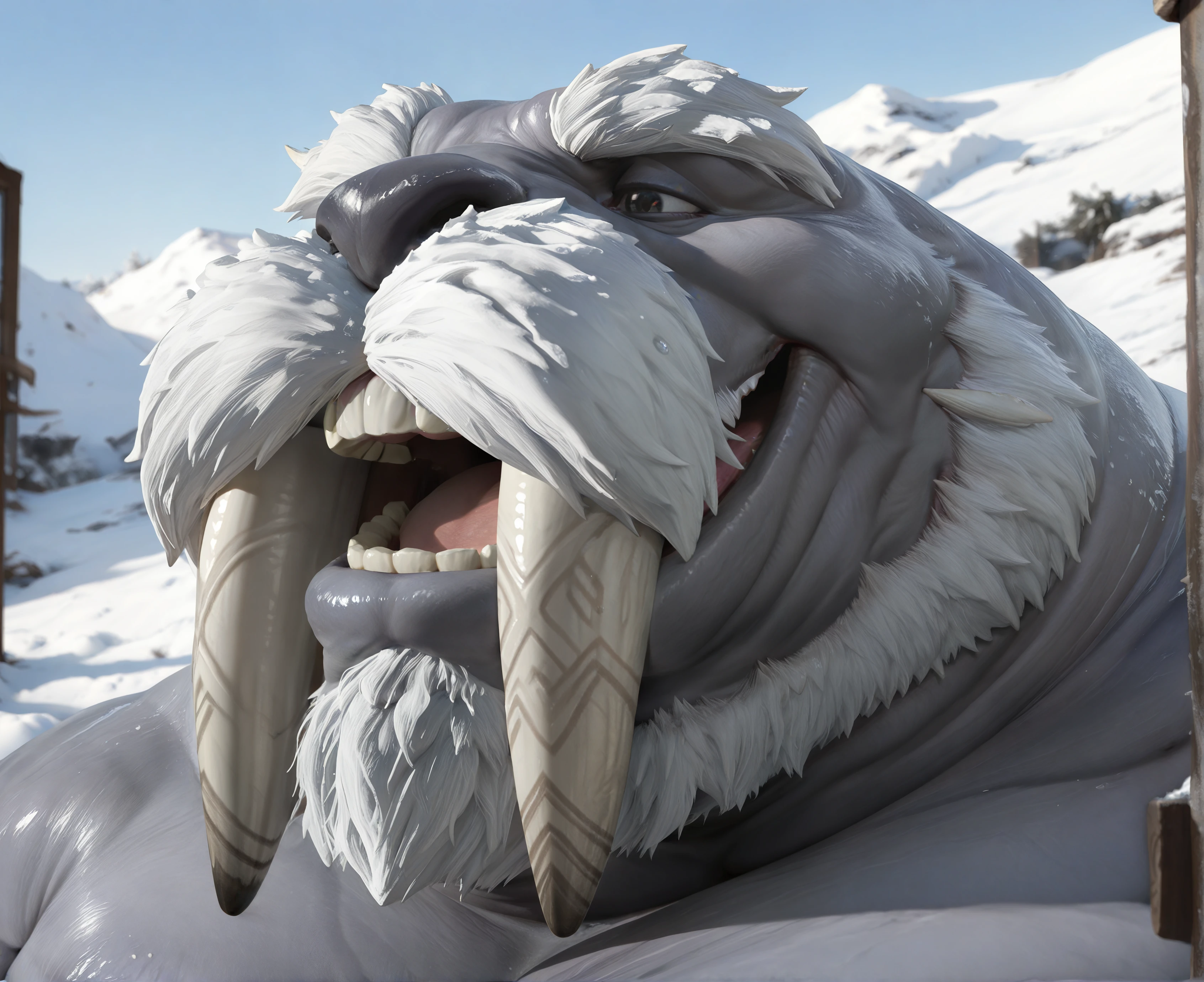 Tags: tusk4rr, fat, chubby, pectorals, round, thick eyebrows, thick body, ????, thick arms, mustache, thick thighs, four fingers, ???????, tusks, three toes, beard, ...