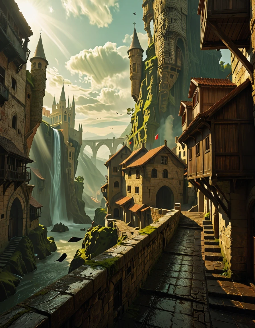 E09, sun shades though clouds, sunlight, golden rays, atmospheric, dramatic lighting, ethereal, soft gradients, tranquil, majestic, natural light, cloudscape, warm glow