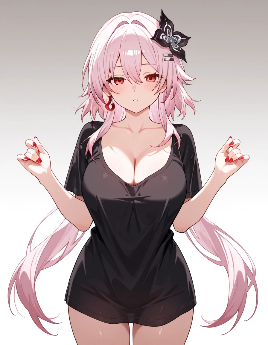 Evernightdef, evn_dress_flower, evn_hair_flower, evn_black_dress, evn_black_jacket, evn_white_sleeveless_shirt, mismatched sleeves, evn_detached_sleeve, evn_hairclip, evn_gloves, evn_umbrella, evn_single_earring, evn_thigh_strap, evn_high_heel_bootsMARCH 7TH