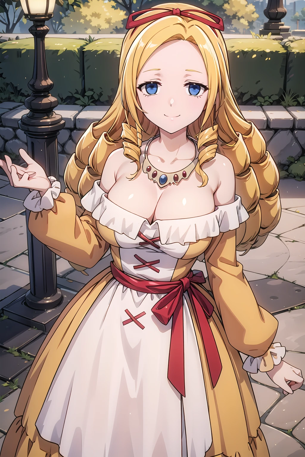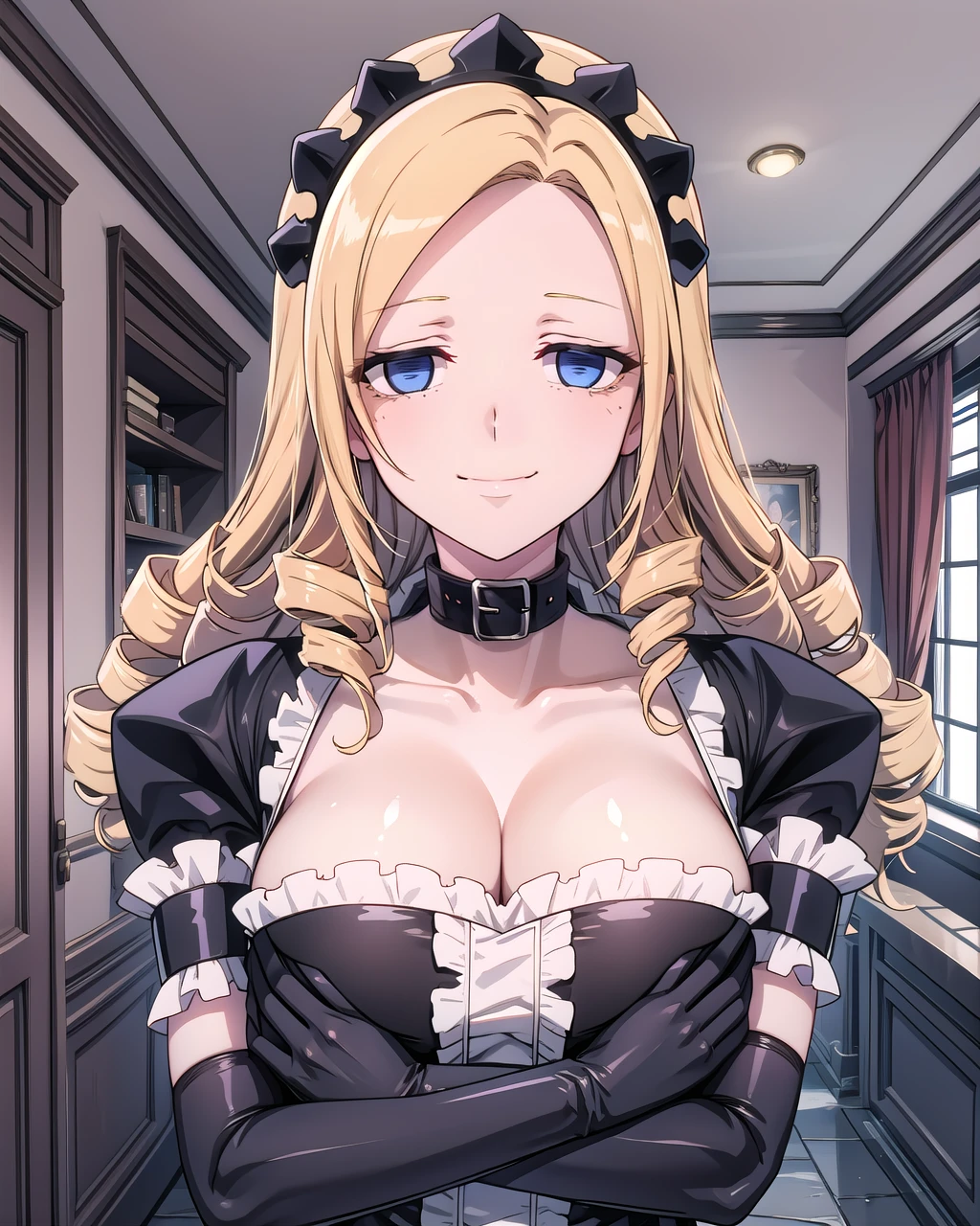 Tags: blonde_hair, blue_eyes, drill_hair, empty_eyes, parted_bangs, forehead