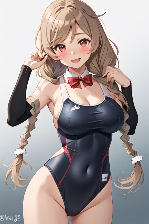 The trigger word is minegumo_kantaicollection, and the recommended tags are best quality, masterpiece, highres, solo, {minegumo_kantaicollection:1.15}, long_hair, twin_braids, braid, light_brown_hair, red_eyes, breasts, brown_eyes, gradient_hair, multicolored_hair, blush, open_mouth, bow, bowtie, red_bow, smile, red_bowtie, large_breasts.