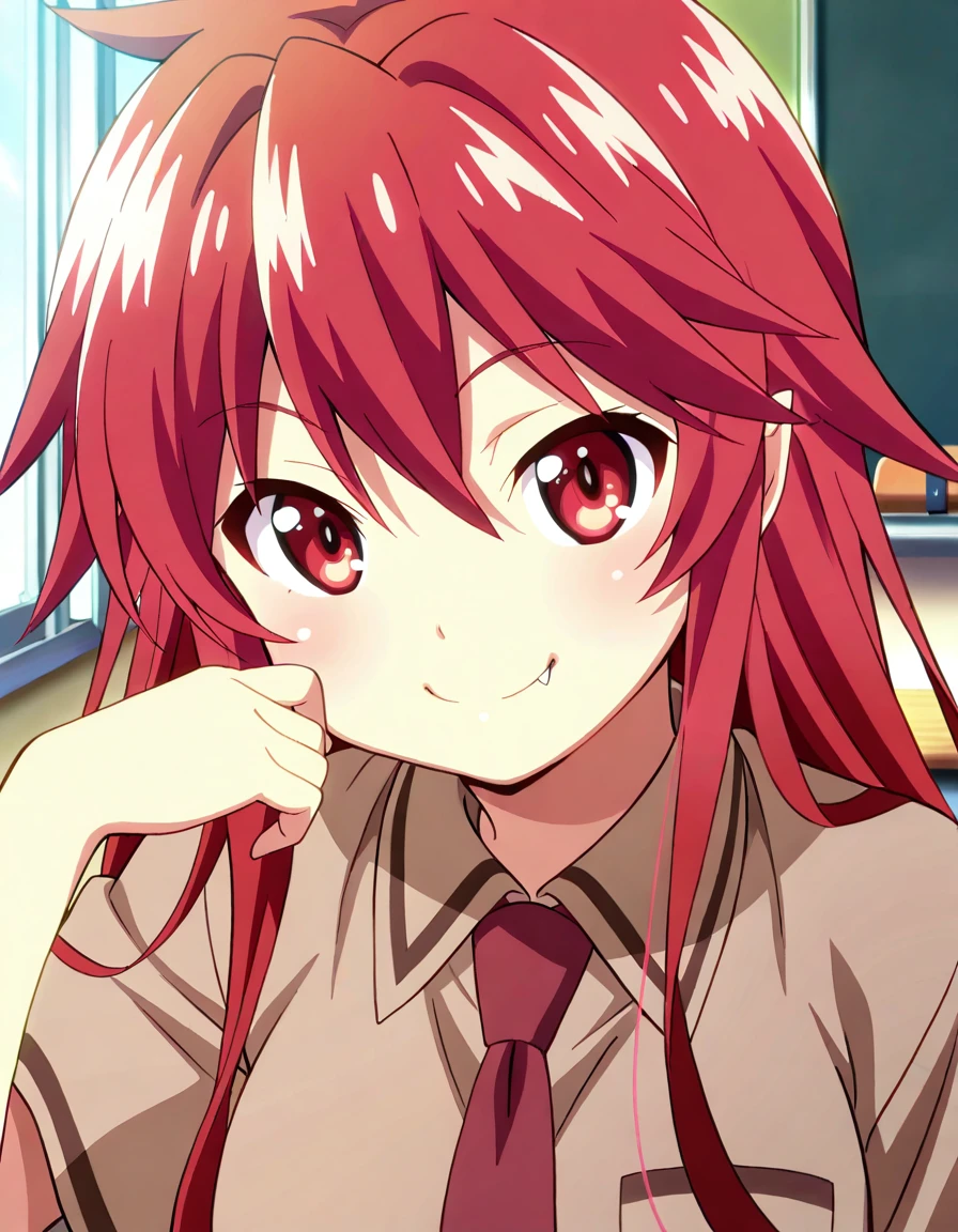 school uniform, brown shirt, brown skirt, red necktie, black socks, shoes,