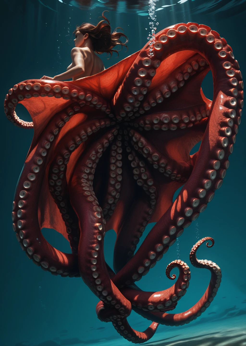 octopus scylla, *color*/*size* tentacles, *color* suction cups, webbed tentacles.For generating the bottom or bottom view: