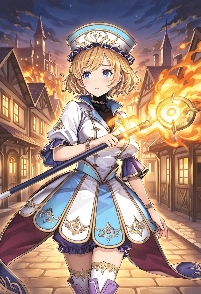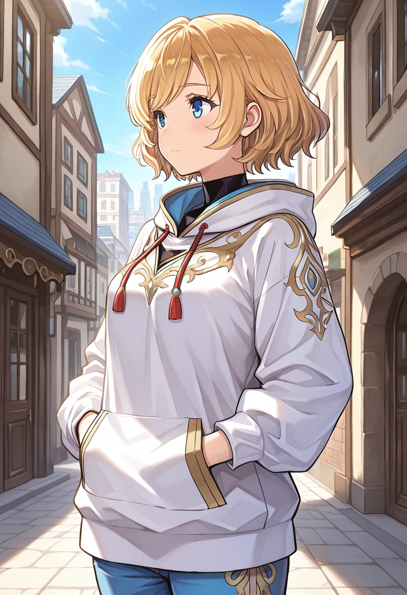 MarielAnotherEden, blonde hair, short hair, wavy hair, blue eyes,