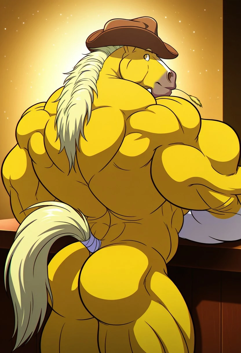 Reinforcement Prompts: "furry male, horse, tail, yellow eyes, long hair, blonde hair, yellow fur"