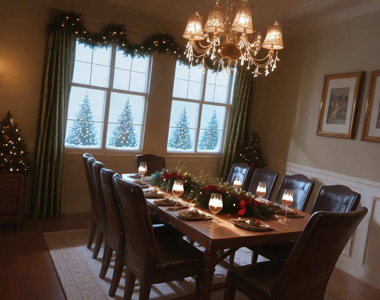 This is an Illustrious lora for a Christmas theme dining room interior decorating setting.